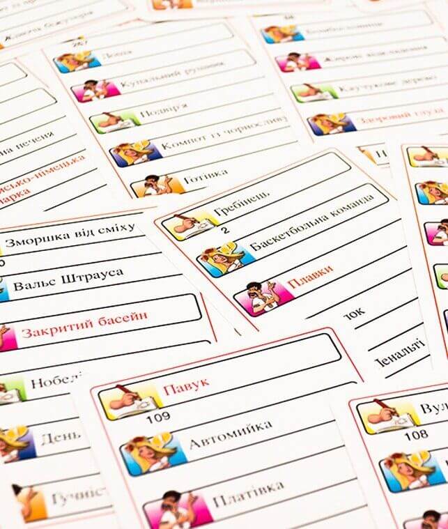 малювання: строго без слів, відповідь має бути намальованою, але не можна малювати слова;