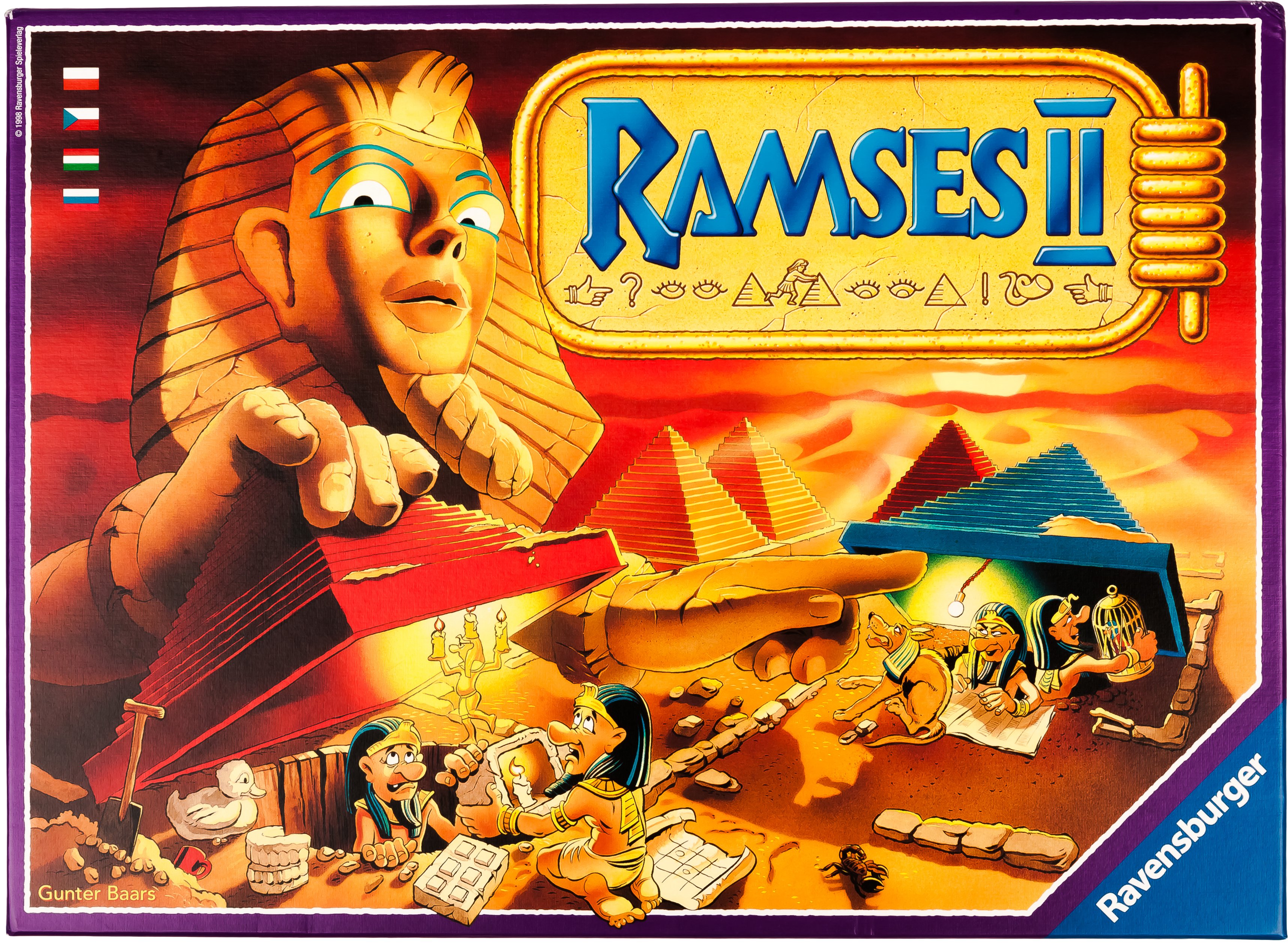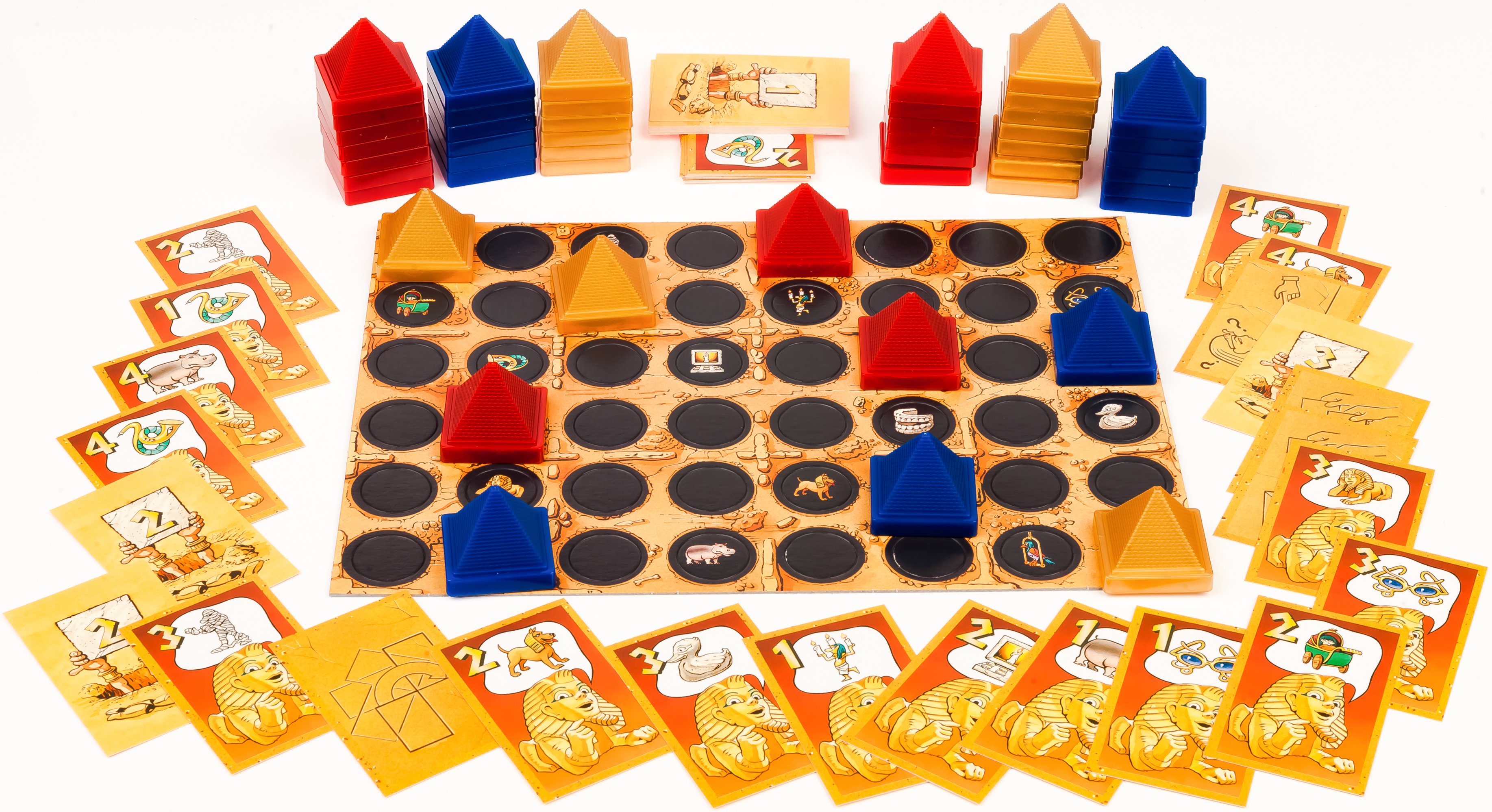 Допоможіть Фараону відшукати свої скарби, зібрані в різних країнах в новій грі від Ravensburger. Мета гри - зібрати найбільшу кількість скарбів і цінних карток. Не залишить байдужими жодного члена сім'ї. Сортуємо картки, беремо ігрове поле з пірамідками та приступаємо.