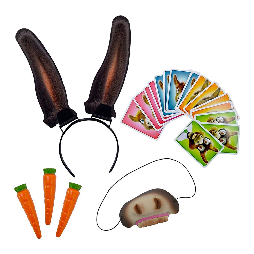 Комплектація: 3 моркви; ніс із зубами осла; обідки з вухами ослика - 4 шт.; колода карт - 16 шт. Деталі набору виготовлені з цупкого паперу, картону та міцного пластику.