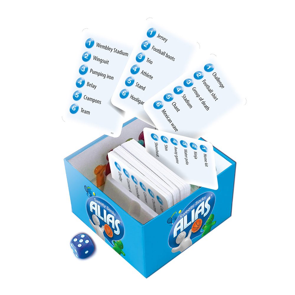 Настільна гра Tactic Alias Sweaty socks англійською дасть змогу перевірити, як добре діти та дорослі знайомі зі світом спорту. Набір сподобається дітям віком від 10-ти років. Спорт — цікава тема з багатьма спеціальними термінами, чи можливо пояснити їх, не називаючи самі слова? Є шанс дізнатися! Гра розрахована на 3 та більше учасників, які за допомогою кубика вирішують, яке слово з картки їм доведеться описувати. Гра з набором допоможе розвинути комунікативні навички, логічне мислення та емоційне сприйняття.