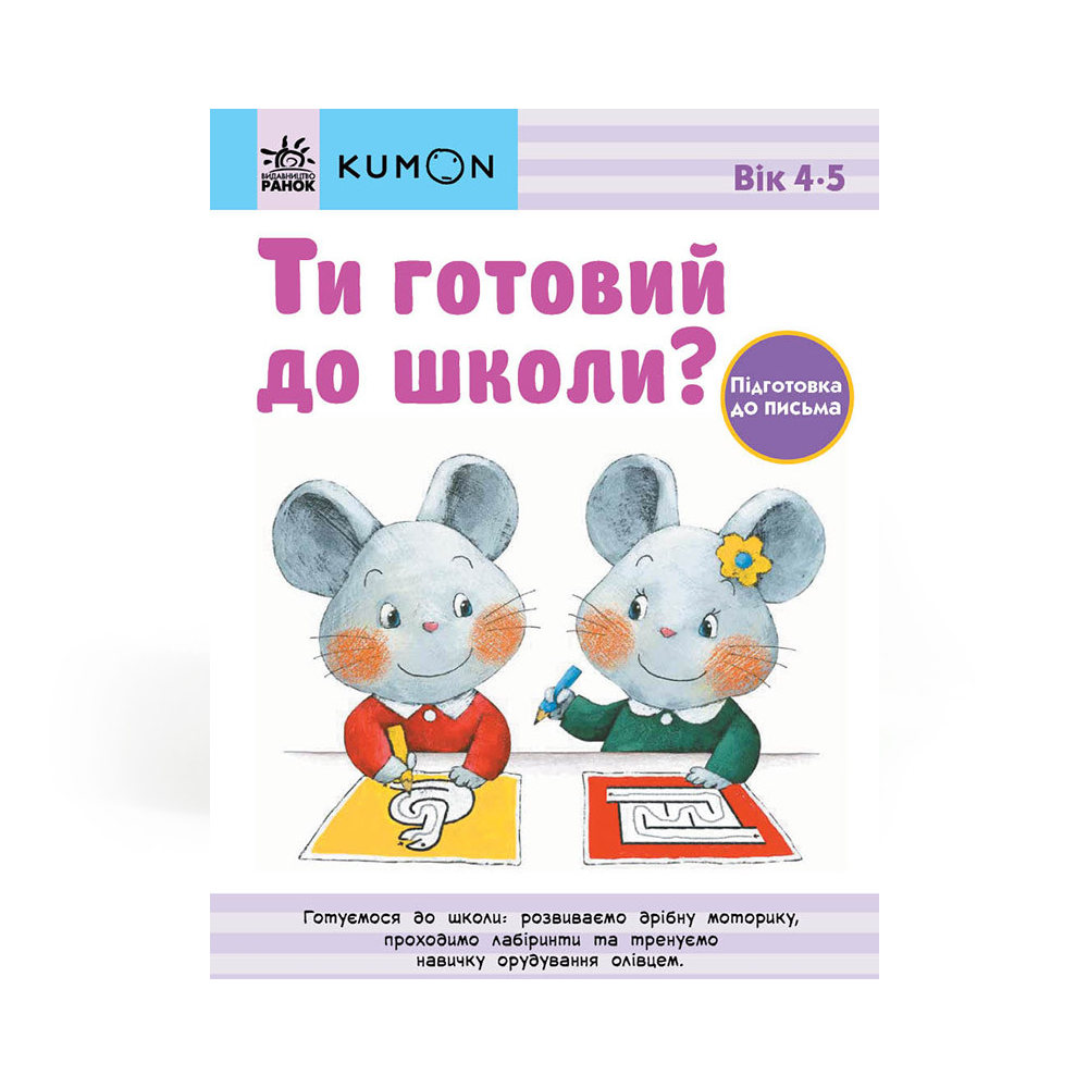 KUMON – методика індивідуального розвитку, за якою навчаються 4 млн дітлахів у 49 країнах. Книги «Ти готовий до школи?» допоможуть дитині опанувати базові навички, якими має володіти дитина, що йде до першого класу. Завдання поступово ускладнюються від сторінки до сторінки.