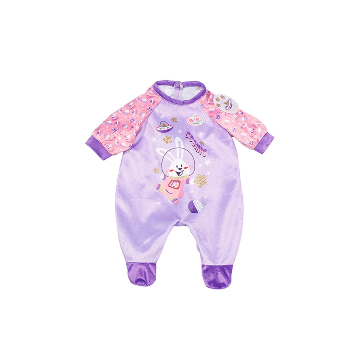 Комплект знадобиться дівчаткам та хлопчикам віком від 3-х років. У ньому милі пупсики зможуть супроводжувати дітей на вечірці чи при перегляді мультиків разом. Малюки з легкістю зможуть одягнути ляльку у комбінезон та зняти його. На ньому є зображення зайчика, написи, нашивки та малюнки на космічну тематику — планети, ракети, зірки.