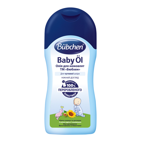 Олія для немовлят Bubchen особливо ніжно очищає й доглядає за чутливою шкірою немовлят під час кожної зміни підгузка. Швидко вбирається, не залишаючи жирного блиску. Прекрасно доглядає за шкірою, живлячи, пом'якшуючи та зволожуючи її. Зменшує подразнення, сприяє регенерації шкіри. Зберігає шкірне дихання.