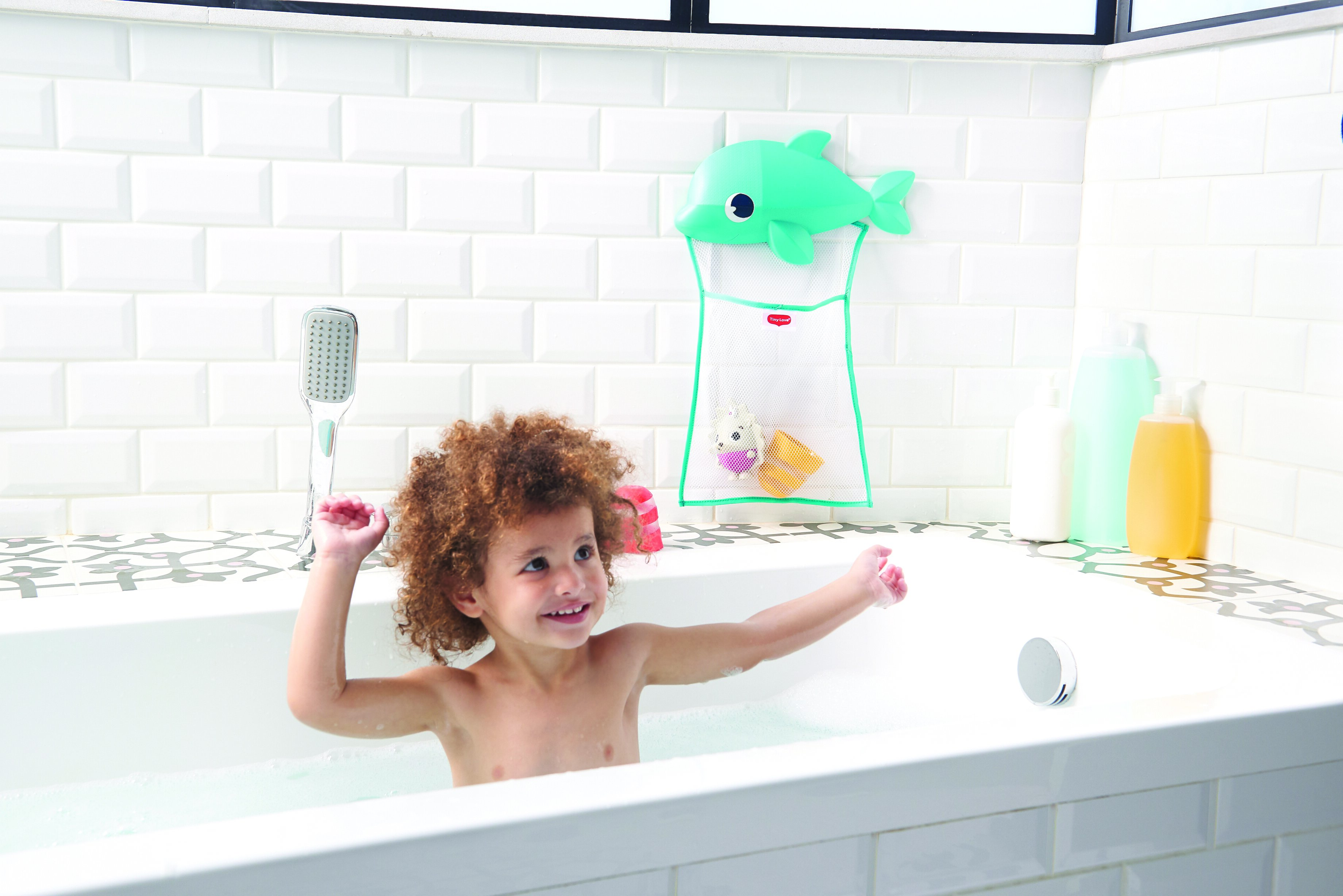 Прибирати іграшки після купання веселіше з милим Дельфіном - органайзером Tiny Love.