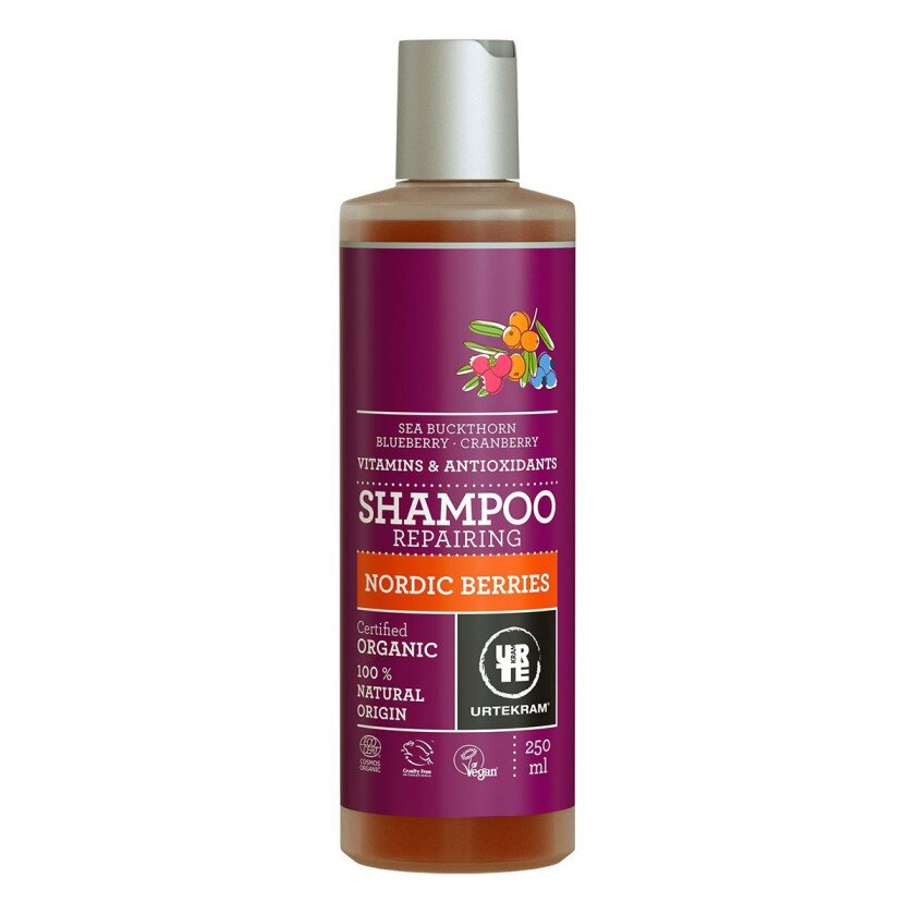 Urtekram International - є найбільшим оптовим продавцем органічних продуктів в Скандинавії. Компанія створює екологічно чисті продукти в категоріях: оброблені і заморожені продукти, сертифіковані органічні продукти по догляду, а також продукти, призначені для людей, які страждають на алергію, включаючи продукти, що не містять лактозу і глютен. Шампунь Urtekram Скандинавські ягоди містить вітамін С, Е, а також поживні речовини з екстракту вербової кори, ефірні масла чорниці, журавлини та обліпіхі, які в поєднанні з гіалуроновою кислотою, забезпечують волоссю добре живлення і зволоження. Шампунь не містить сульфатів.