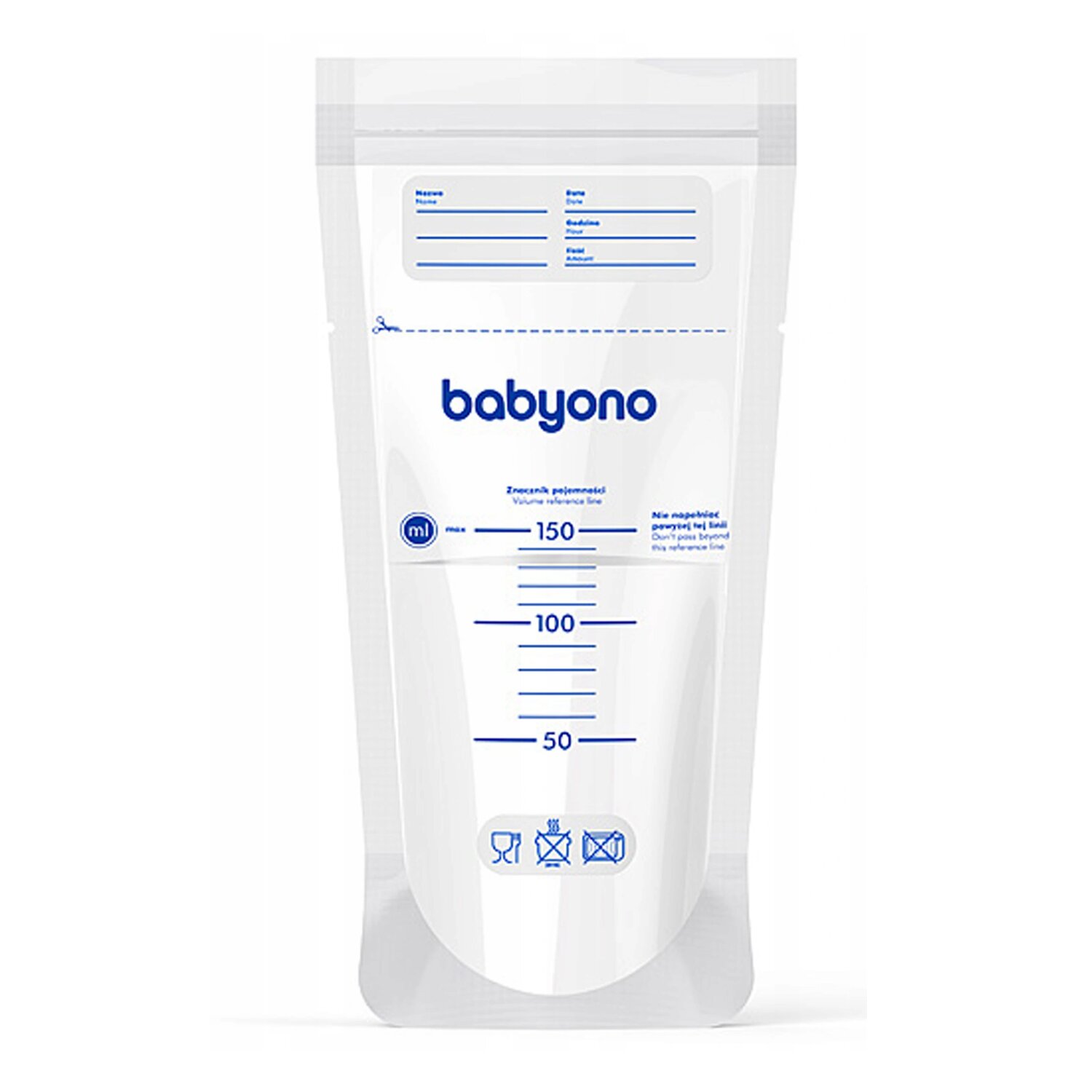 У спеціальних пакетах BabyOno зручно зберігати та заморожувати грудне молоко. Вони виготовлені з міцного харчового поліетилену, оснащені струнною застібкою, що забезпечує повну герметичність.