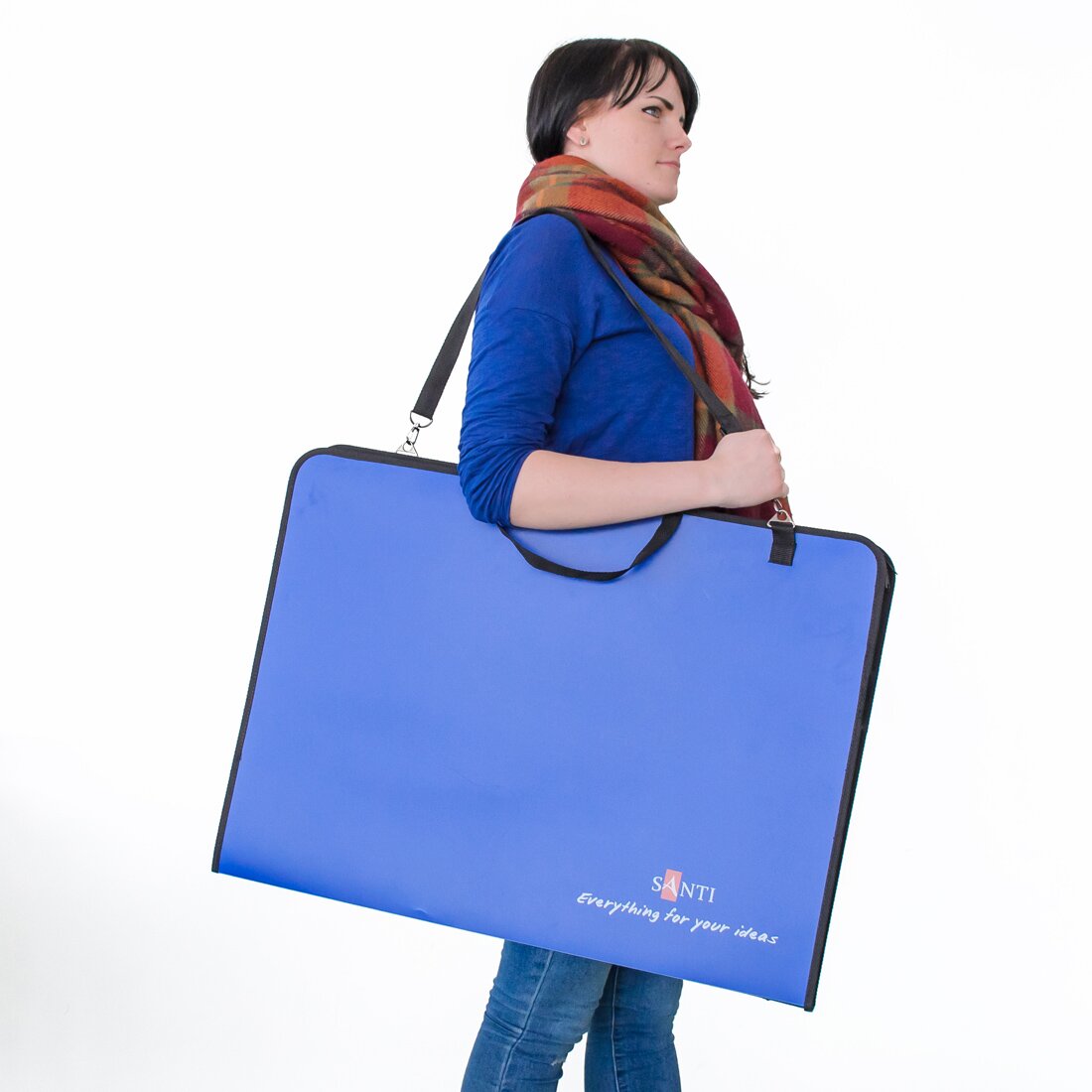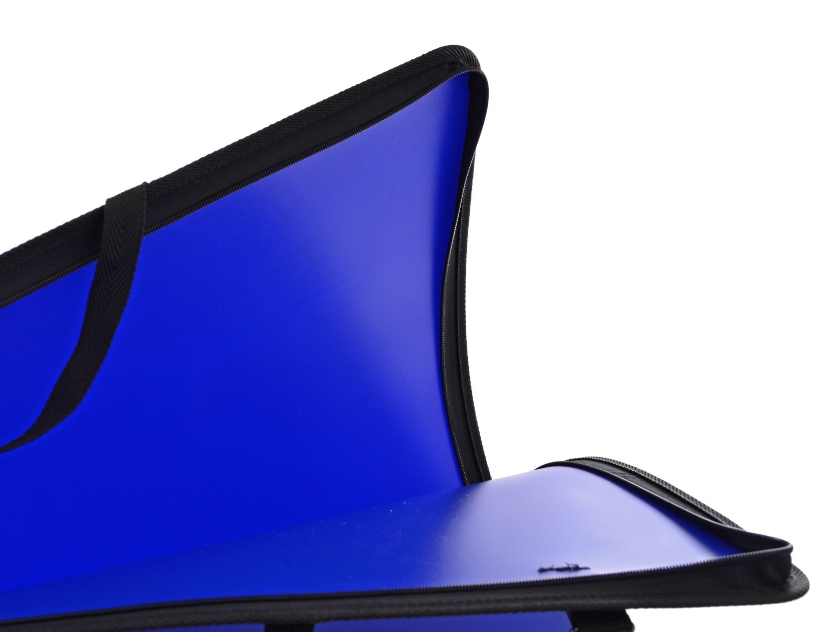 Якісна, яскрава і зручна пластикова папка-портфель призначена для перенесення ескізів. Виготовлена з безпечного матеріалу - поліпропілен. Закривається на блискавку, ручки і окантовка папки виготовлені з тканини. У комплекті йдуть довгі ручки для носіння портфеля на плечі.
