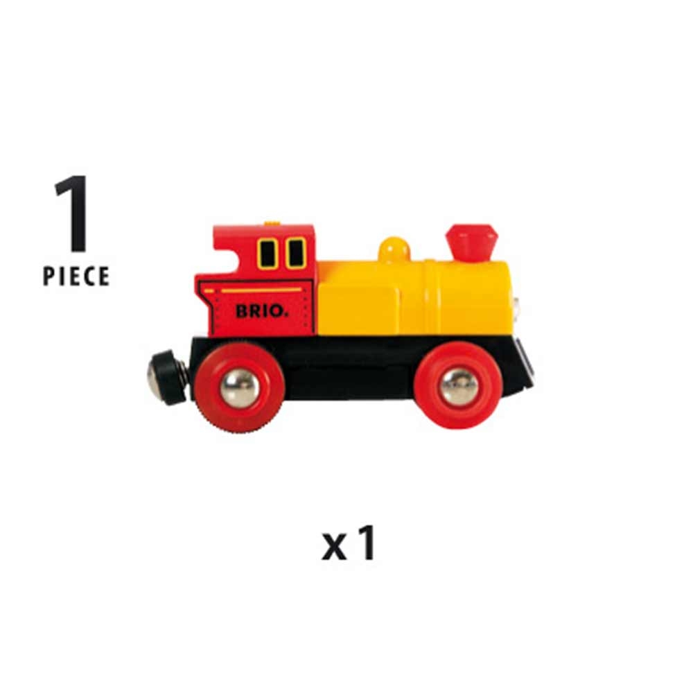 Паровоз BRIO на батарейках (жовто-червоний) (33594) курсує всіма залізничними коліями BRIO. Жовто-червоний красень чудово доповнить вашу колекцію та допоможе побудувати власне містечко BRIO.