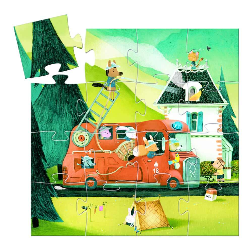 Пожежна машина - це яскрава барвиста головоломка у формі пазла від французського бренда DJECO. Зібравши пазл, дитина побачить картинку із зображенням пожежної машини, дружних лісових пожежників і казкового будиночка. Завдяки цій грі, діти навчаться збирати окремі елементи, познайомляться з різними тваринами, дізнаються, що таке частина від цілого.
