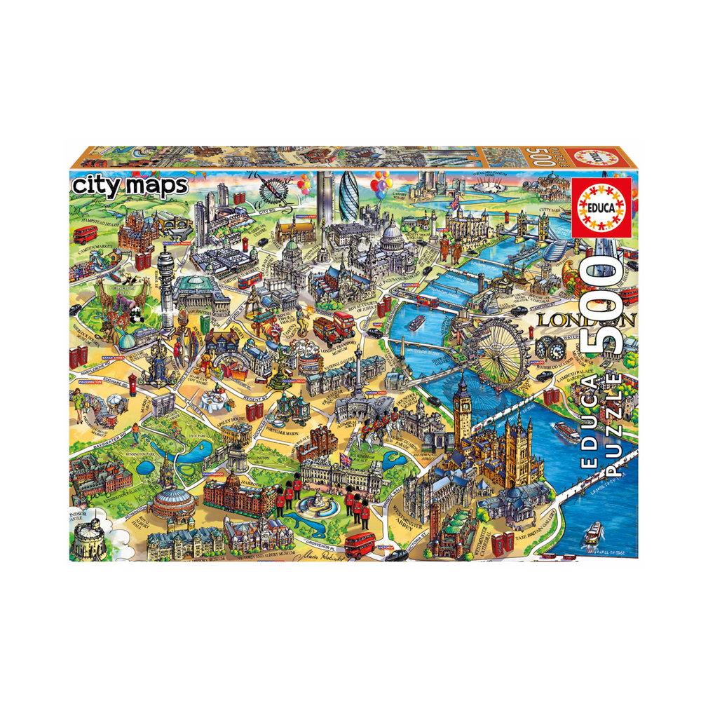 Настільна гра від іспанського бренду EDUCA сподобається дітям від 10 до 14 років. Яскраве зображення карти британської столиці складається зі 500 дрібних елементів. Пазли виготовлені з щільного картону.
