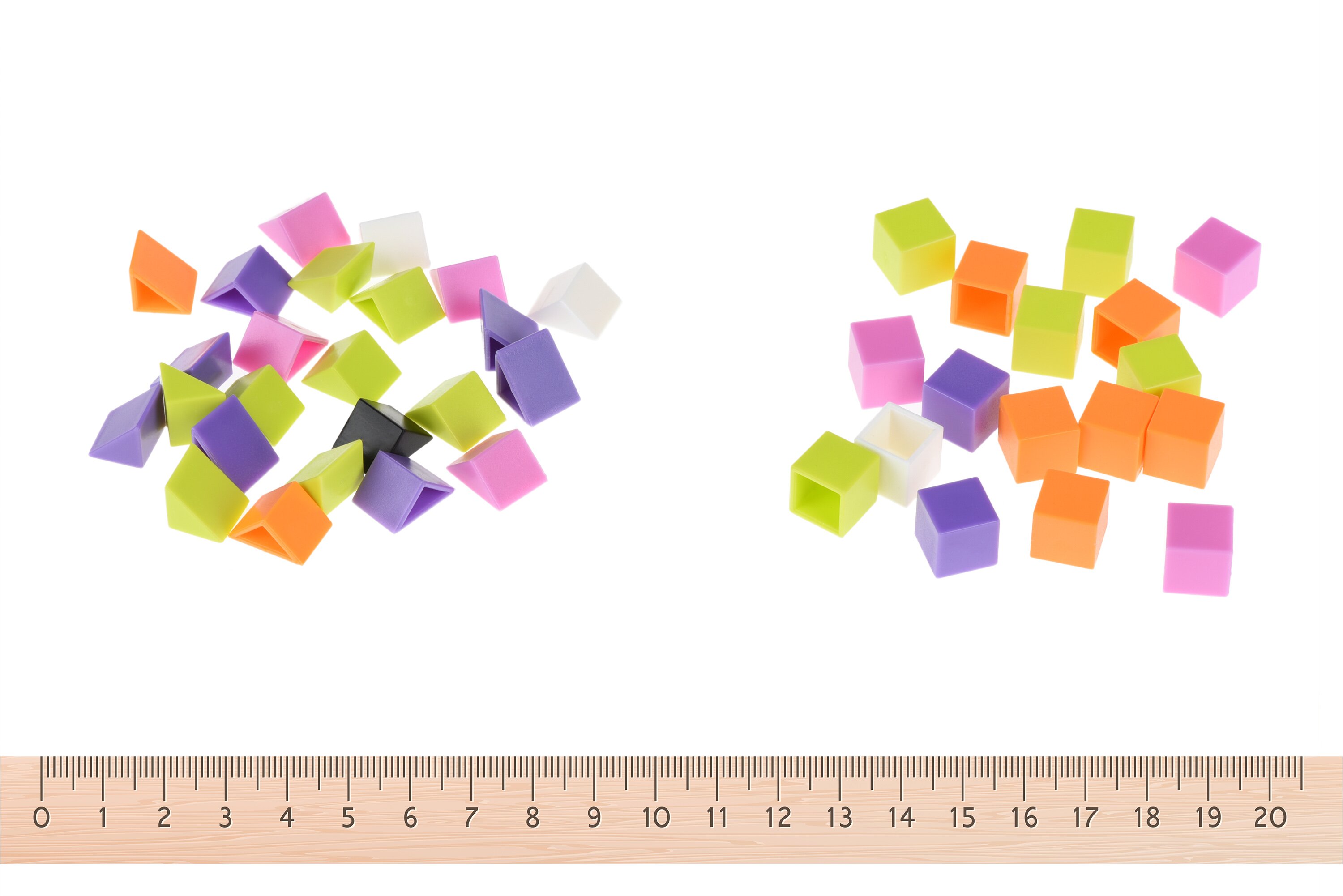 У набір входить 420 деталей – вистачить на всіх! У комплекті діти знайдуть 4 дощечки основи, які можна поєднати між собою, утворивши велику квадратну або довгу прямокутну платформу. Деталі мозаїки – маленькі різнокольорові кубики і трикутнички.