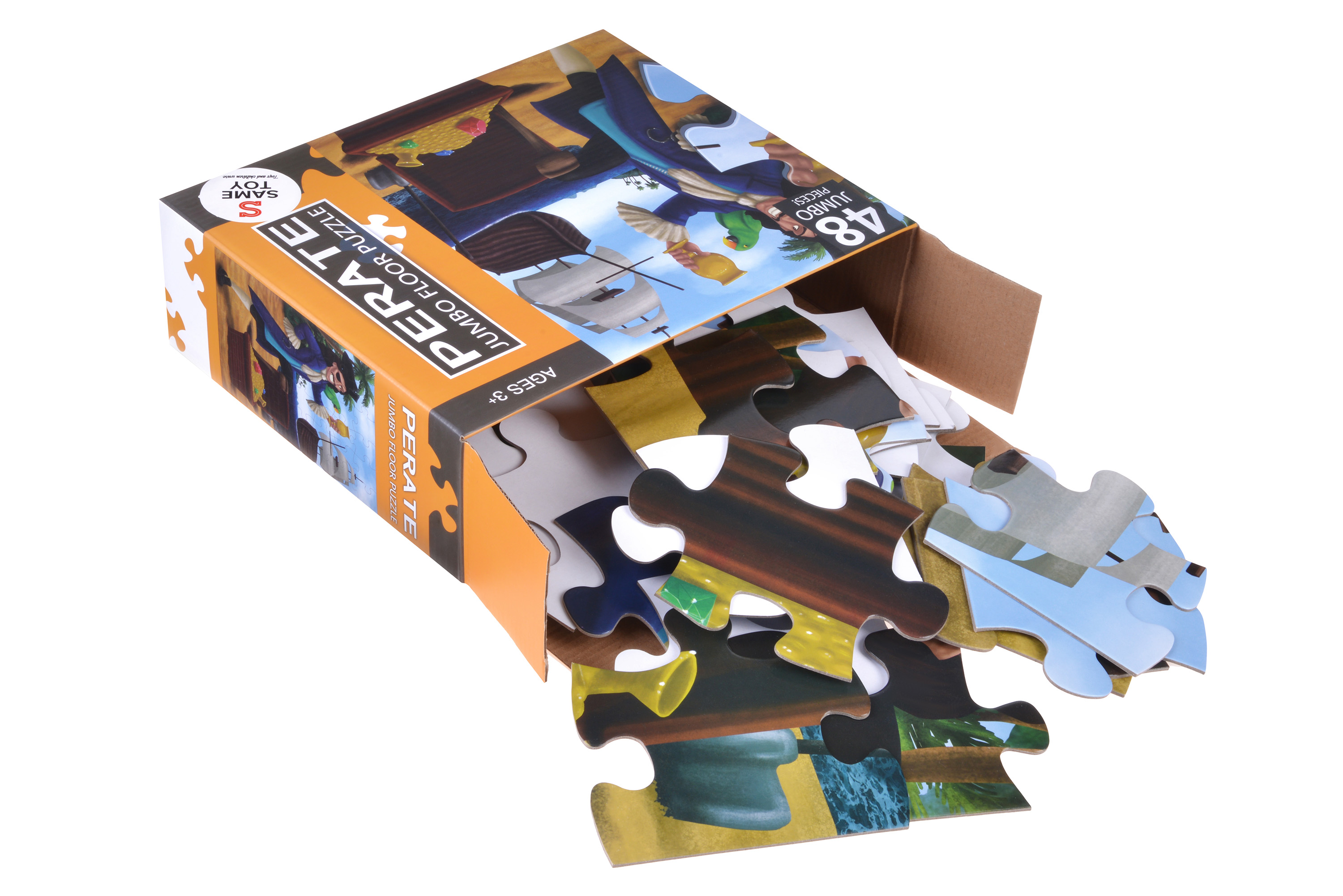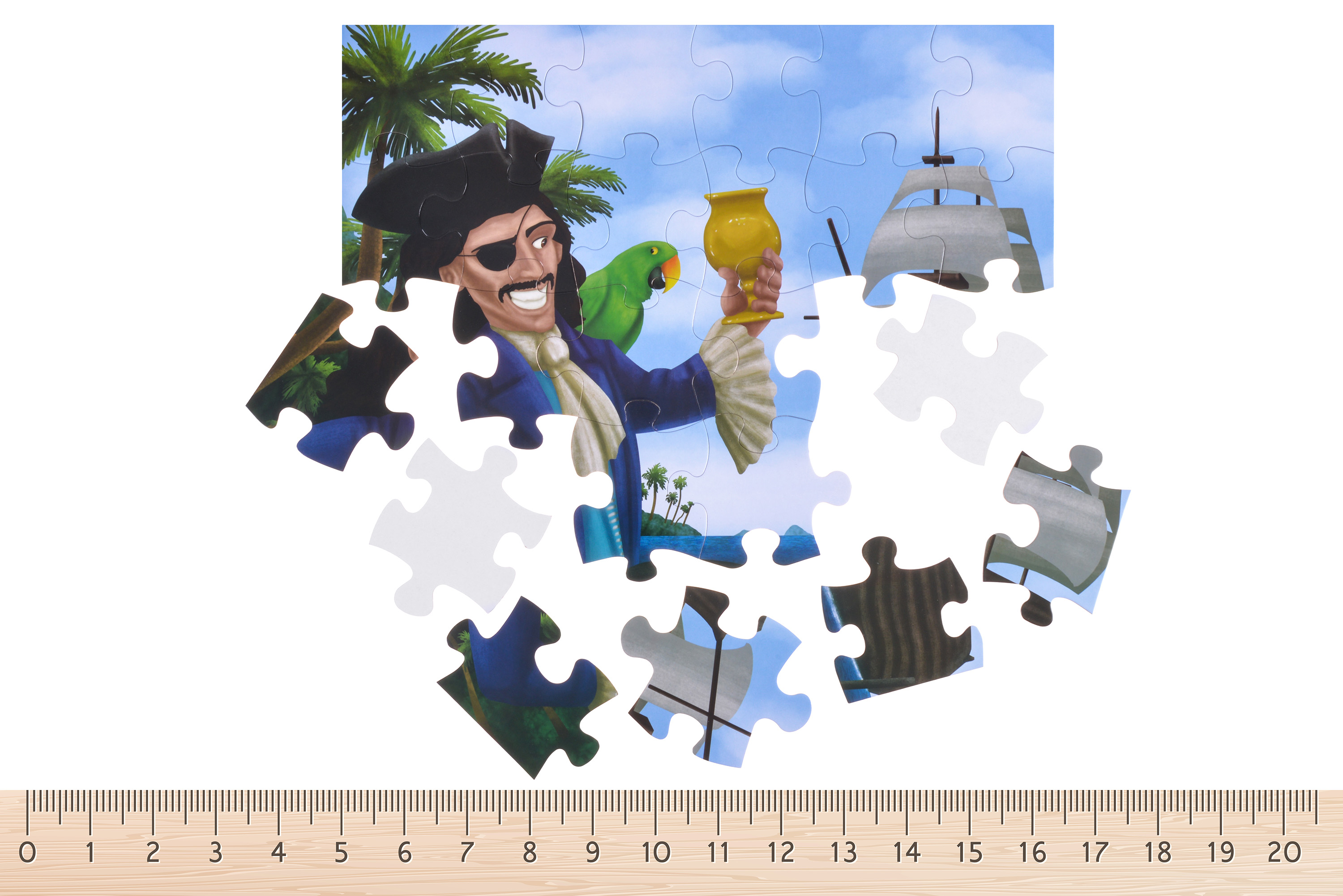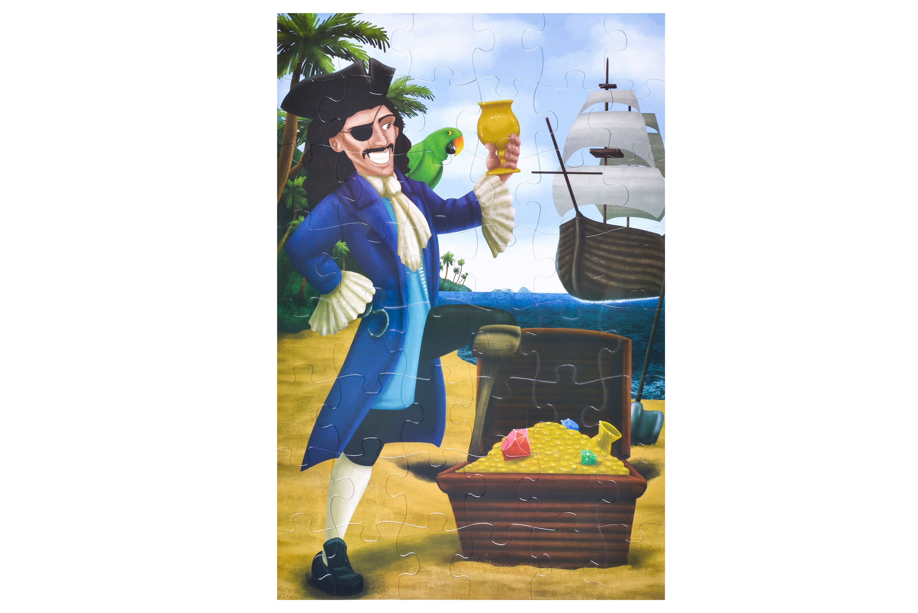 Захоплюючий пазл ""Пірати"" дозволить малюкам зануритися в світ казкових пригод! Щоб здійснити захоплюючу подорож на загублений острів в пошуках скарбів, хлопцям потрібно всього лише повністю скласти картинку. Картина складається з 48 елементів. Всі деталі виготовлені з високоякісного тришарового картону, вони не деформуються і зручні для маленьких дитячих ручок. Пазли привертають увагу своїми яскравими фарбами, гарними малюнками і високою якістю матеріалу. Гра з пазлами сприяє розвитку сенсомоторної координації та дрібної моторики рук, логіки, уяви і пам'яті, привчає до посидючості й акуратності.