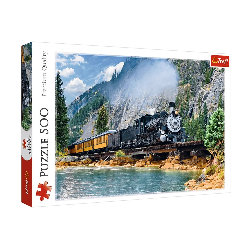 "Гірський поїзд" - настільна гра для дітей старше 10 років. І картина, яку необхідно створити самому. Це зображення старовинного поїзда в красивій гірській місцевості. Складається з 500 пазлів з щільного картону. Розвиває дрібну моторику, логічне та просторове мислення, посидючість, уважність. Виробник - Trefl (Польща).