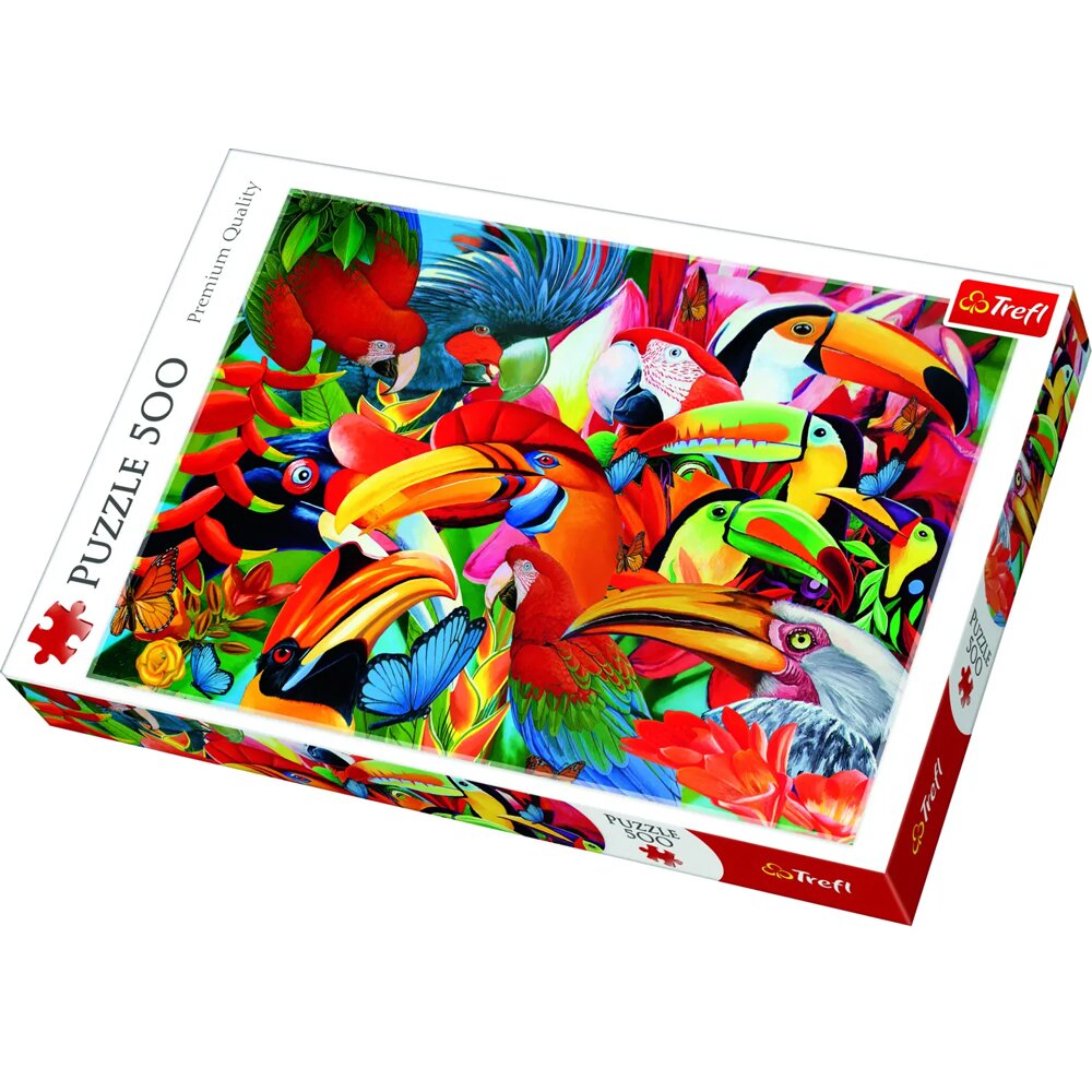 "Кольорові пташки" - настільна гра для дітей старше 10 років. І репродукція картини сучасного австралійського художника, мандрівника Гріма Стівенсона, яку необхідно створити самому. Це зображення яскравих папуг на фоні мальовничого пейзажу лісів Амазонки. Складається з 500 пазлів з щільного картону. Розвиває дрібну моторику, логічне та просторове мислення, посидючість, уважність. Виробник - Trefl (Польща).