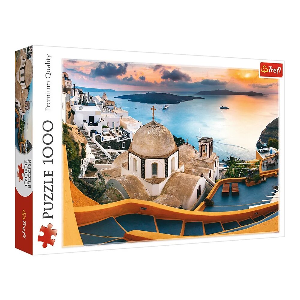 "Казкове Санторіні" Trefl - настільна гра для дітей старше 10 років і картина, яку необхідно скласти самому. Це зображення найдорожчого грецького курорту. Складається з 1000 пазлів з щільного картону. Розвиває дрібну моторику, логічне та просторове мислення, посидючість, уважність. Виробник - Trefl (Польща).