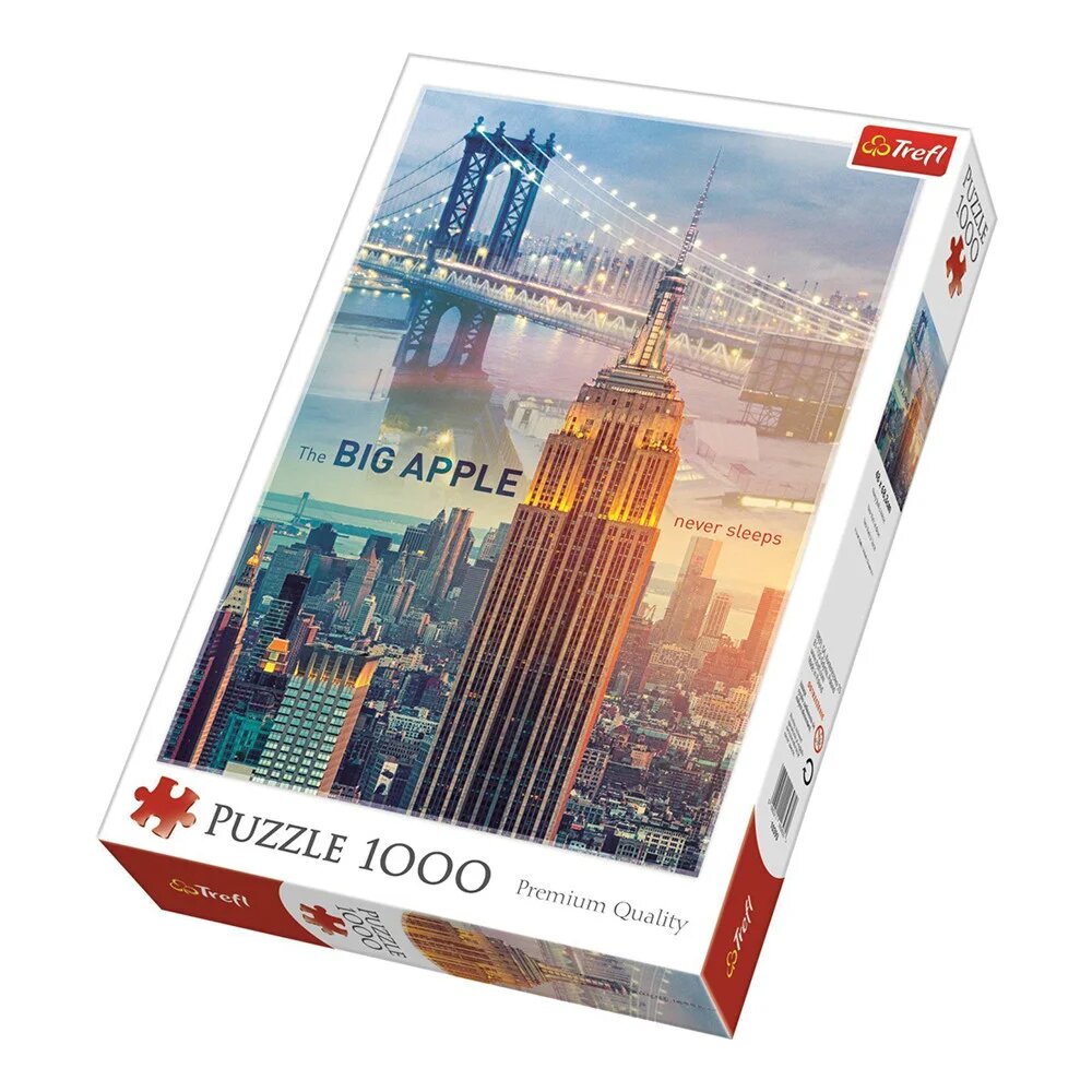 "Нью-Йорк на світанку" Trefl - настільна гра для дітей старше 10 років і картина, яку необхідно скласти самому. Це мальовничий вид вранішнього центру "великого яблука" з хмарочосом Емпайр-Стейт-Білдінг та Бруклінським мостом. Складається з 1000 пазлів з щільного картону. Розвиває дрібну моторику, логічне та просторове мислення, посидючість, уважність. Виробник - Trefl (Польща).