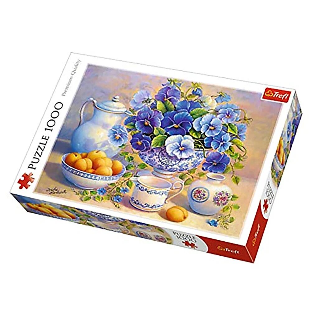 "Блакитний букет" Trefl - настільна гра для дітей старше 10 років і репродукція картини сучасної британської художниці Тріши Хардвік, яку необхідно скласти самому. Це зображення прекрасного літнього натюрморту. Складається з 1000 пазлів з щільного картону. Розвиває дрібну моторику, логічне та просторове мислення, посидючість, уважність. Виробник - Trefl (Польща).