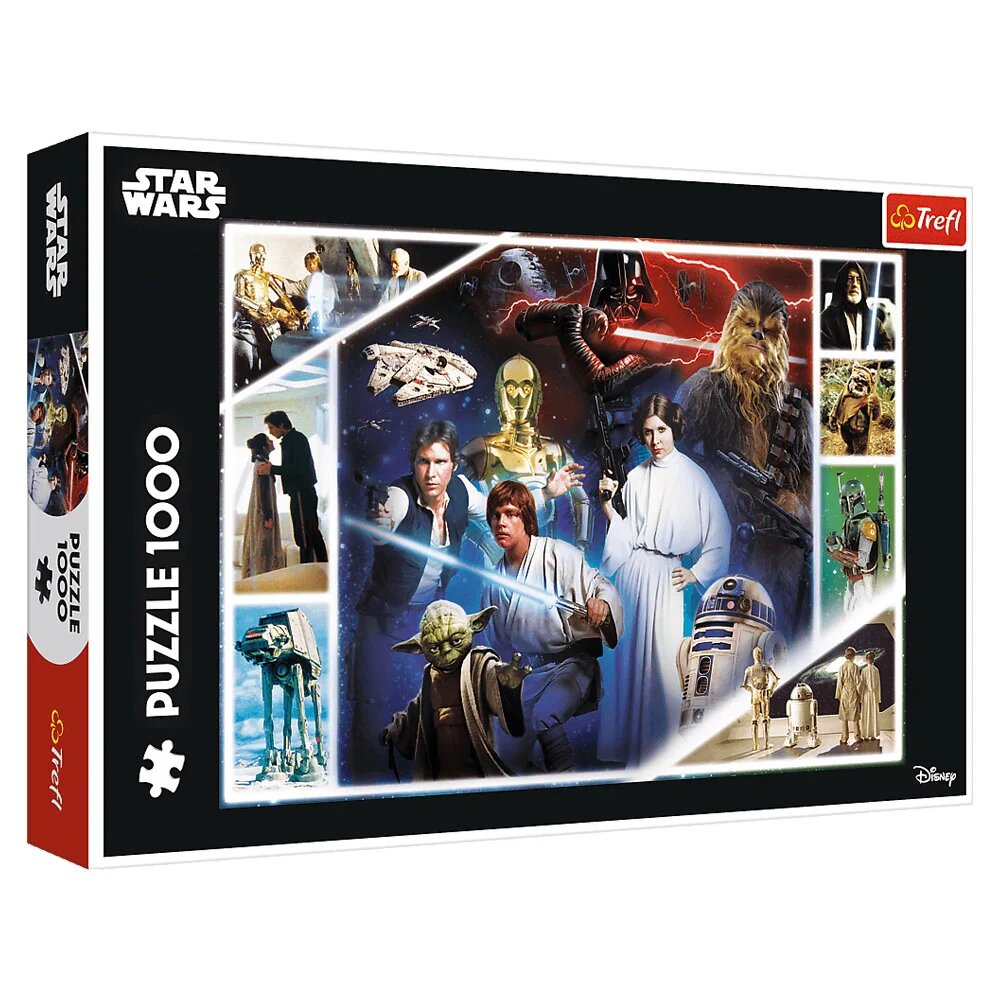 "Зоряні війни" Trefl - настільна гра для дітей старше 10 років і картина, яку необхідно скласти самому. Це зображення героїв серії культових фільмів Star Wars. Складається з 1000 пазлів з щільного картону. Розвиває дрібну моторику, логічне та просторове мислення, посидючість, уважність. Виробник - Trefl (Польща).