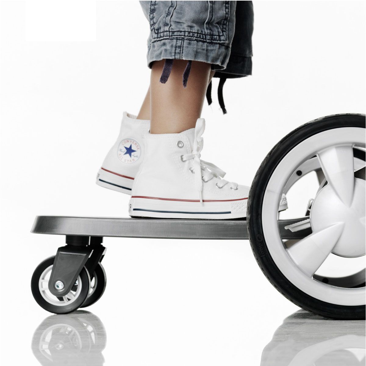 Трансформуйте коляску Stokke у міру зростання вашої родини. Підніжка Stokke Xplory Rider створена для того, щоб близькі люди завжди були поруч.