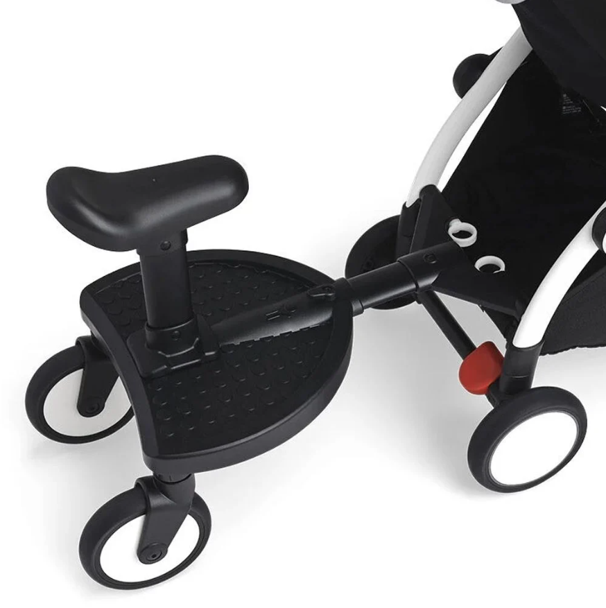 Підніжка на коляску Stokke YOYO дозволяє старшій дитині приєднатися до веселої поїздки, відчуваючи себе частиною команди з молодшим братиком або сестричкою, а батькам гармонійно поєднувати виховання двох діток.