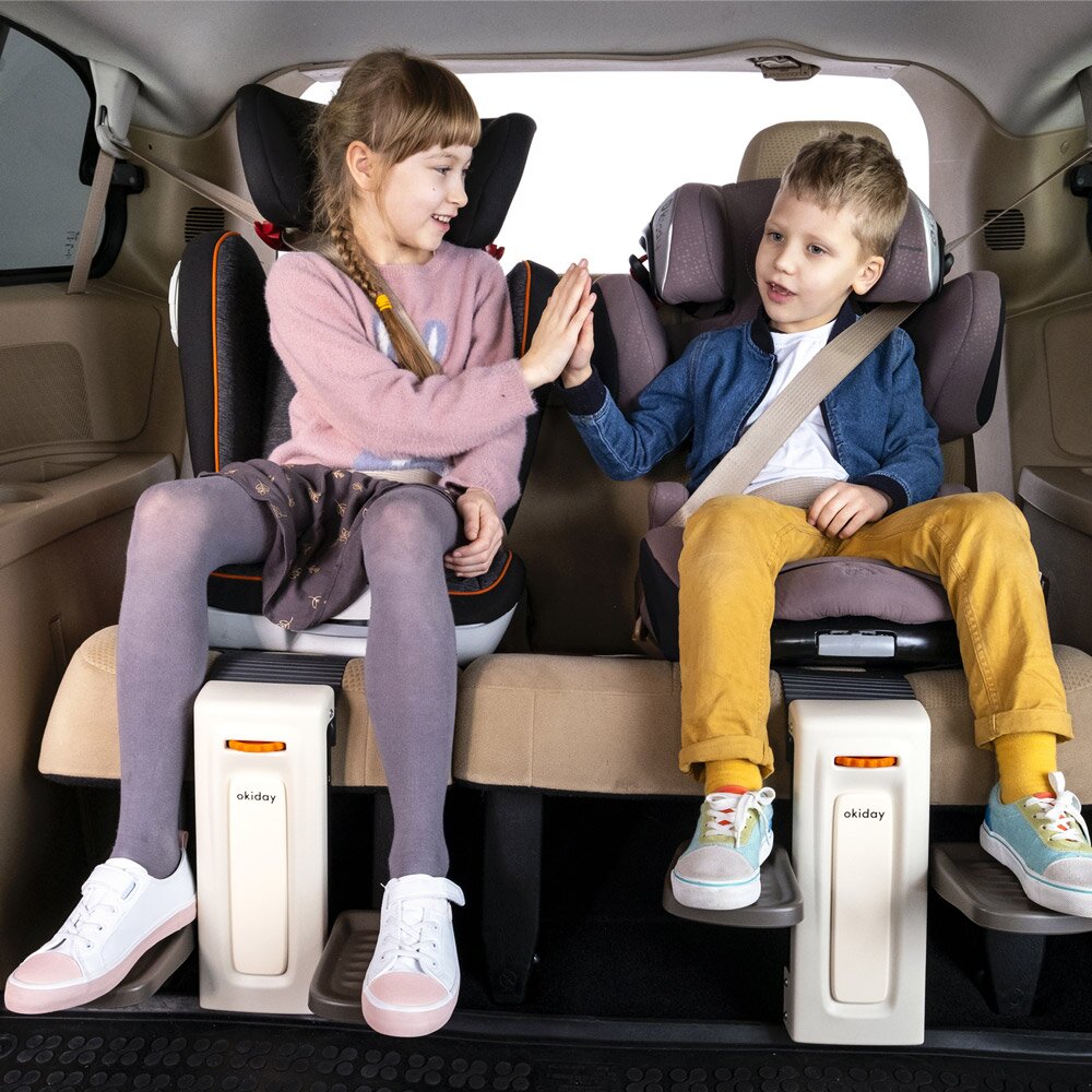 Підніжка OKIDAY забезпечує правильну позицію дитини у автокріслі і підвищує безпеку під час подорожі.