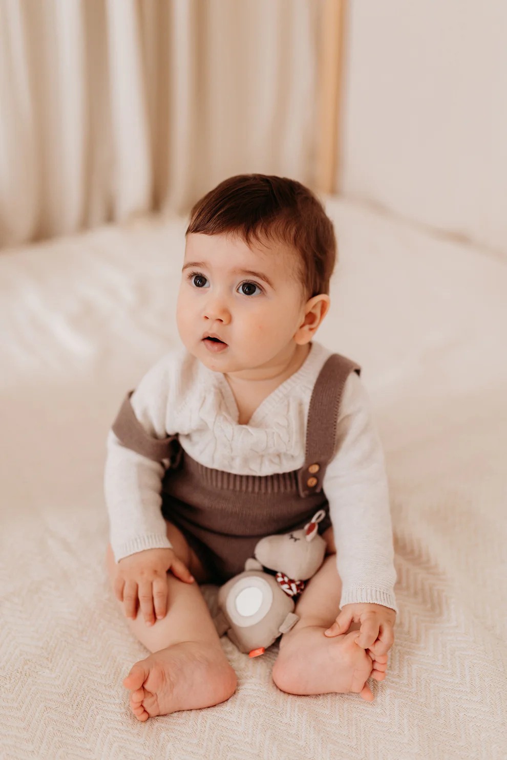 Зручне кріплення: Завдяки текстильній петлі іграшку легко закріпити на дугах розвиваючого килимка, бампері візочка або на ручці автокрісла.