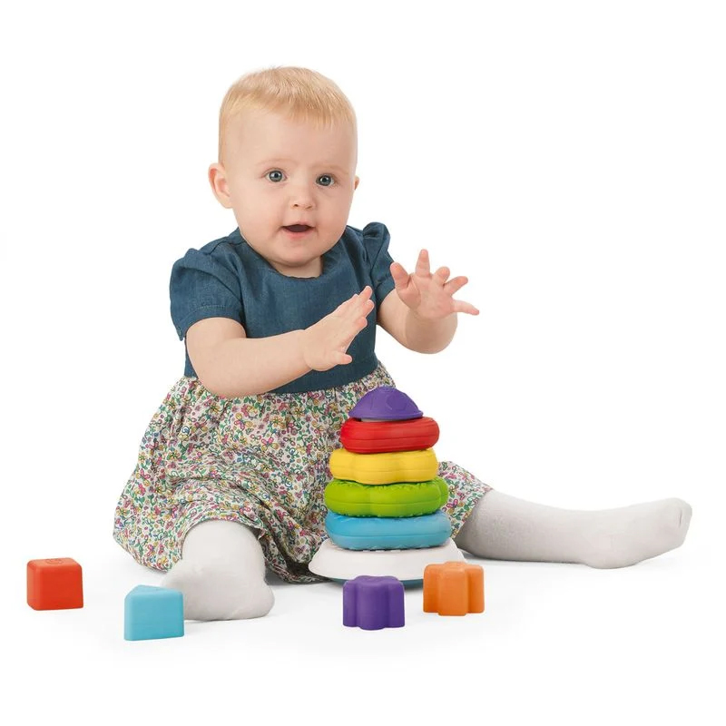 "Ring Tower" 2 в 1 від Chicco – пірамідка-сортер 2 в 1, яка сприяє розвитку логіки, когнітивних та зорово-моторних навичок у дитини.