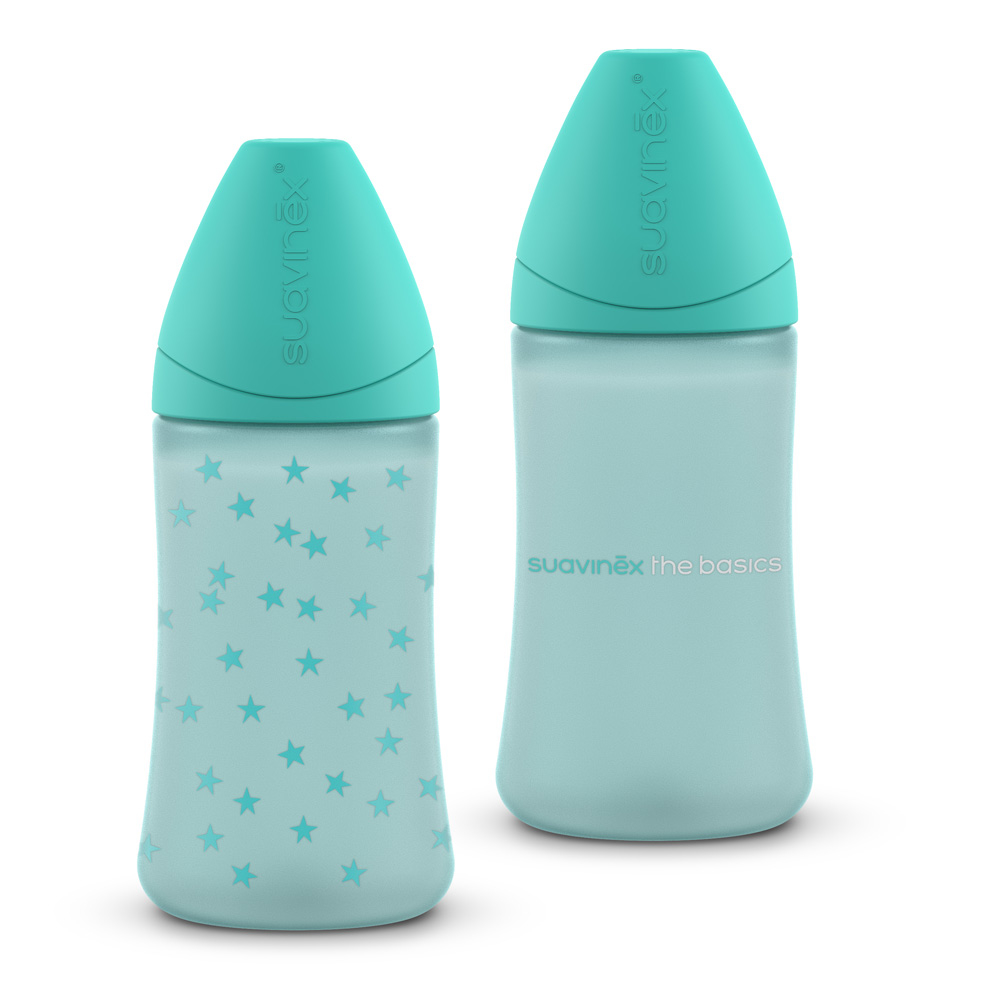 Suavinex Basics - пляшечка для годування малюка від іспанського бренду. Легка, бо виготовлена з поліпропілену. Не містить бісфенол А. Має яскравий дизайн та ергономічну форму. Пляшечка оснащена 3-позиційною соскою, кришечкою для ліпшої стерильності.
