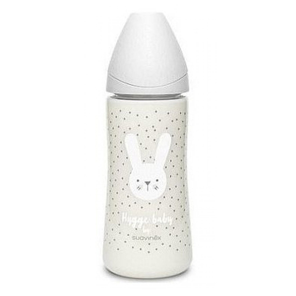 Пляшечка Suavinex (Суавінекс) Hygge: Затишні історії з круглою соскою підходить для годування малюка від 6 місяців.