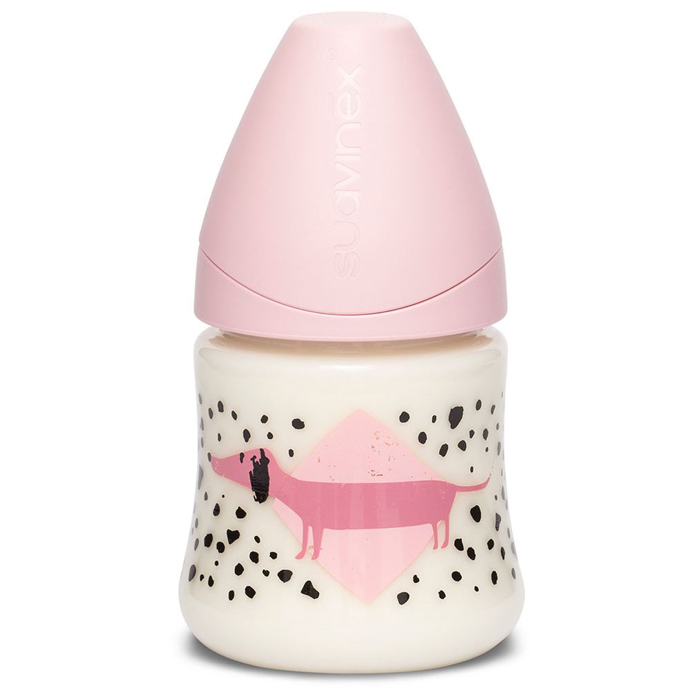 Пляшечка Suavinex Історії цуценят - пляшечка для годування малюка від іспанського бренду. Легка, бо виготовлена з поліпропілену. Не містить бісфенол А. Має яскравий дизайн та ергономічну форму. Пляшечка оснащена круглою соскою з повільним потоком, кришечкою для ліпшої стерильності.