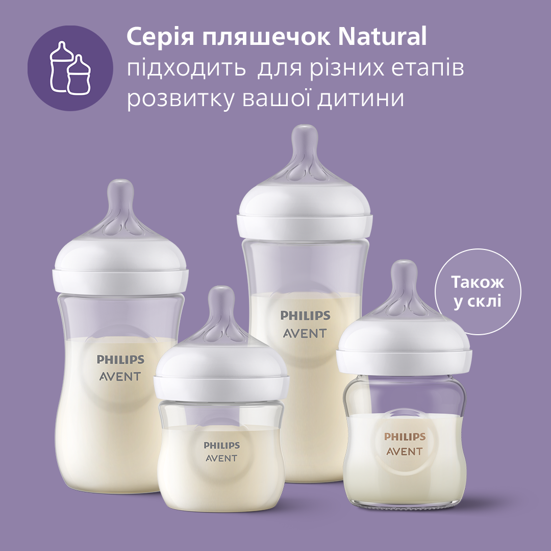 Пляшка Philips Avent серії Natural виготовлена з матеріалу, що не містить бісфенолу-А* (поліпропілен).