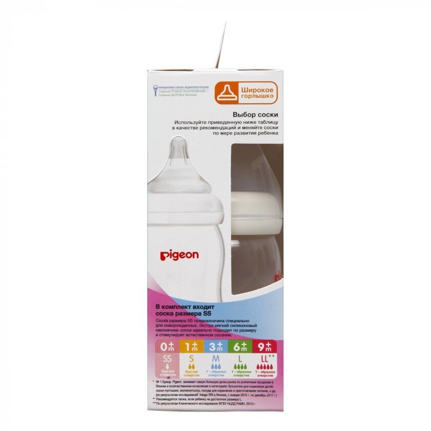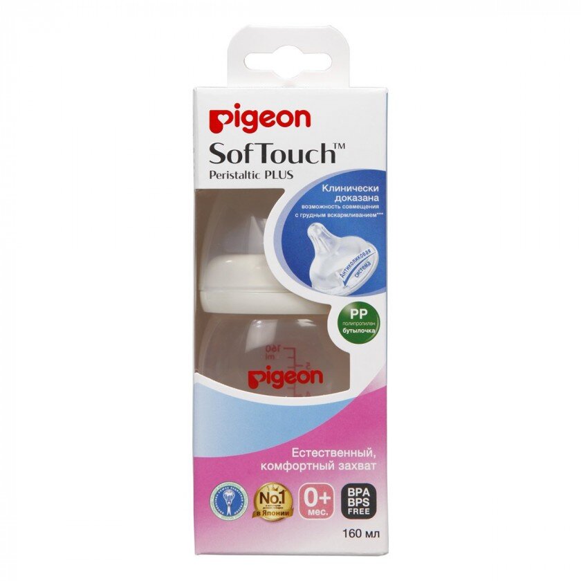 Пляшка для годування Pigeon SofTouch Peristaltic Plus з фізіологічною соскою розроблена спеціально для грудних немовлят на основі науково-практичних досліджень лабораторії Pigeon. Створена в підтримку грудного вигодовування. Не спричиняє плутання сосків. Унікальна конструкція соски дає змогу відтворювати природні механізми смоктання грудей матері.