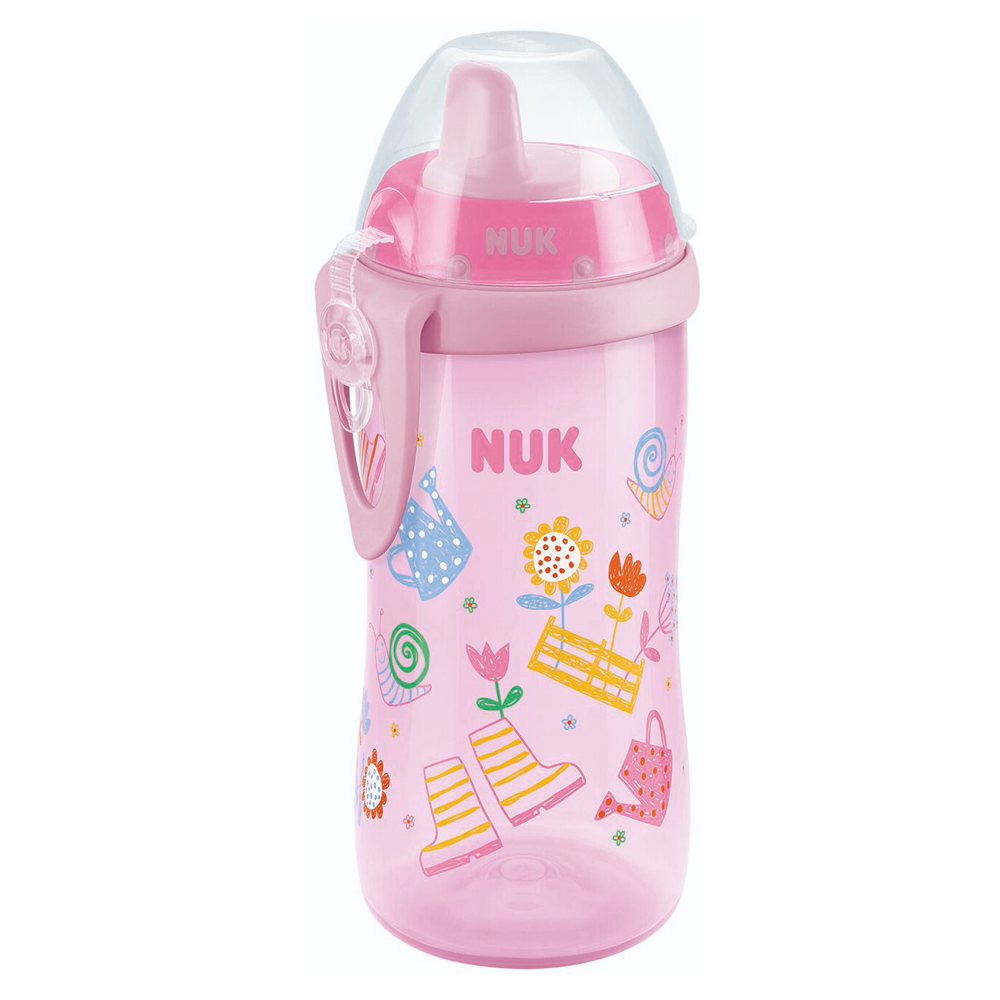 Поїльник ергономічної форми, розроблений для дитячих ручок. Стійка проти надкушування насадка для пиття виготовлена з твердого ПП (поліпропілену). Не протікає. Спеціальний клапан робить потік рідини безперервним, полегшуючи питво.З практичною кліпсою для фіксації на сумці, ремені або дитячій колясці, із захисним ковпачком.