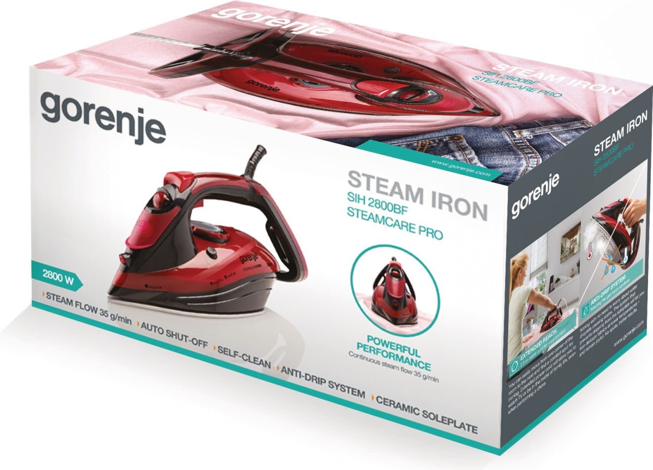 Gorenje SIH2800BF - праска з функцією відпарювання. Потужність нагрівання: 2800 Вт. Аналоговий регулятор температури. Індикація температури