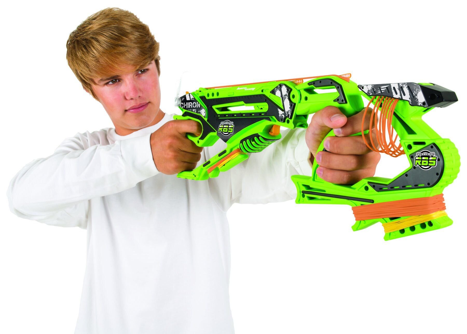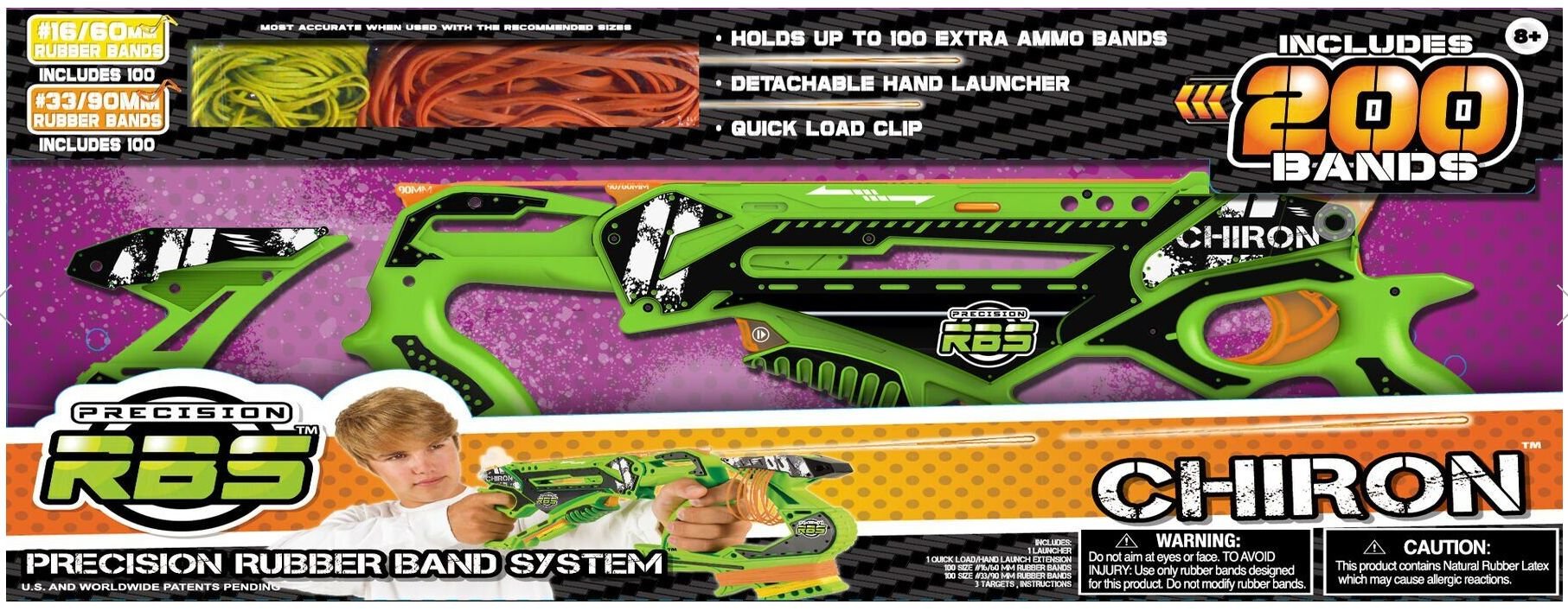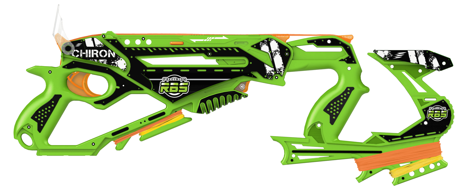 На корпусі — два натягачі для гумок різного типу й п'ять тримачів для запасних гумок. До набору входять картонні мішені.