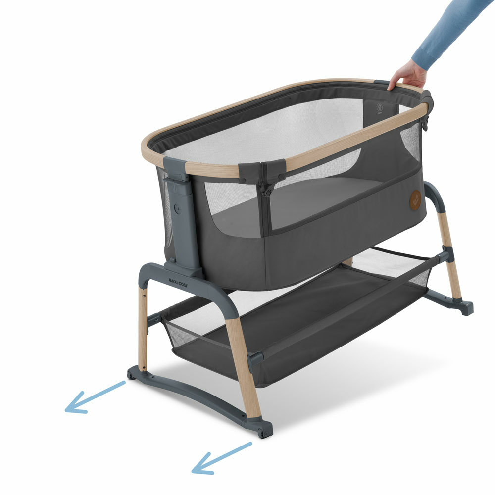 Матрац підвищеної товщини з поліпшеною амортизацією і підтримкою, що забезпечує високий рівень комфорту, дасть змогу вашій дитині насолоджуватися спокійним, безтурботним сном. Під час сну, коли ваш новонароджений більш неспокійний, ви можете скористатися зручною функцією заколисування, просто відкинувши дугоподібну ніжку, щоб заколисати малюка. У приставному ліжечку Maxi-Cosi Iora Air також використовуються тканини по всьому периметру для максимальної циркуляції повітря, тому вашій дитині завжди буде комфортно спати. А завдяки п'яти різним положенням за висотою і зручній функції ковзання ви завжди зможете тримати дитину поруч, у безпеці та захищеності. Ви навіть можете розташувати одну сторону вище за іншу, щоб полегшити стан дитини, якщо у неї рефлюкс або закладеність носа.