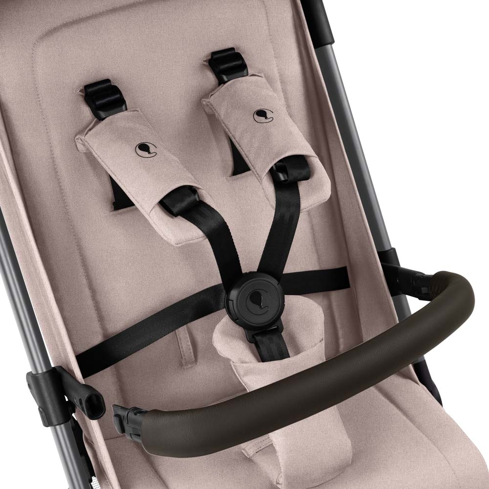 Інноваційна 5-точкова система ременів безпеки HappyBelt® легко регулюється спереду завдяки практичній магнітній застібці та безступеневому регулюванню ременів. Зручні м'які плечові ремені спроєктовані таким чином, щоб злегка виступати над спинкою, що значно полегшує посадку дитини.