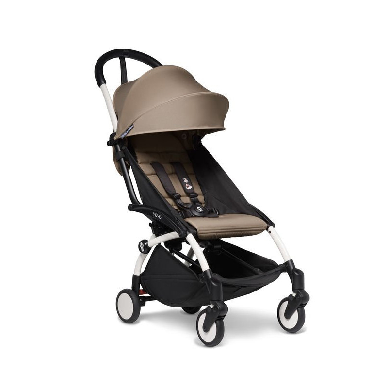 Комплект прогулянкової коляски складається з білого шасі YOYO² та текстилю для прогулянкового блоку Yoyo Plus 6+ Taupe.