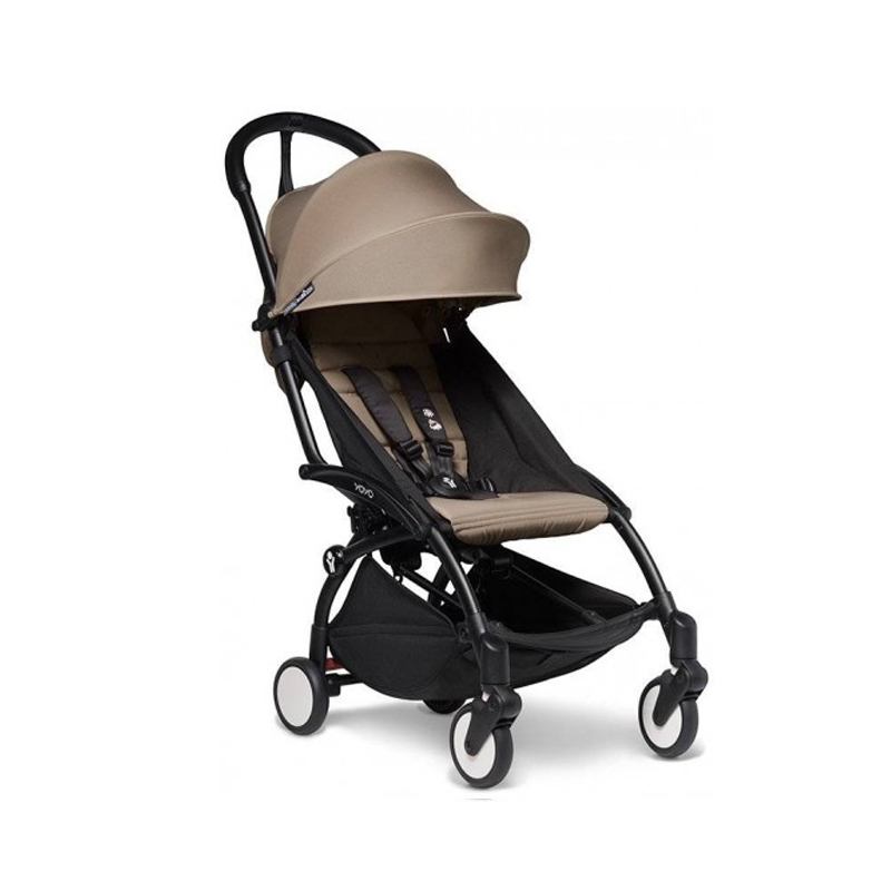 Комплект прогулянкової коляски складається з чорного шасі YOYO² та текстилю для прогулянкового блоку Yoyo Plus 6+ Taupe.