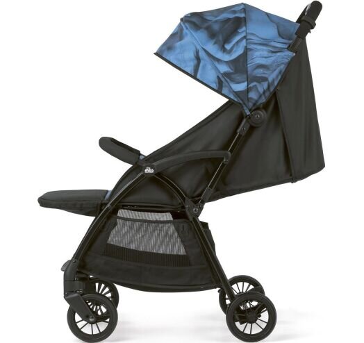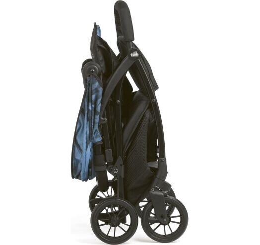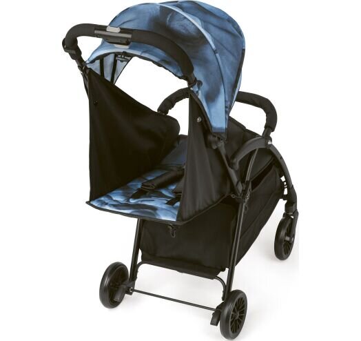 Спинка регулюється в декількох положеннях (підходить з народження), широке і зручне місце для сидіння. Система складання однією рукою знаходиться на ручці. 5-точкові ремені безпеки. Регульована підніжка. Складаний і знімний бампер. Оббивка знімна, можна прати при 30 °C.