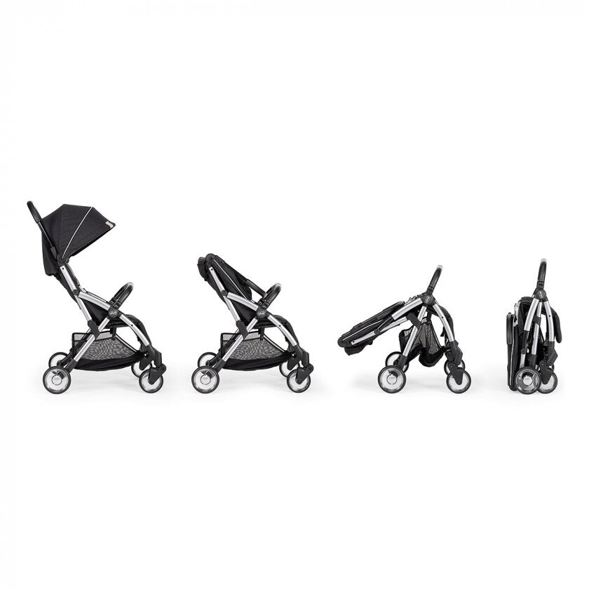 Автоматичне складання ONE touch - достатньо натиснути на одну кнопку на ручці, щоб коляска автоматично склалася! У складеному стані не потрібно додаткової підтримки. Goody Plus на стільки компактна, що в складеному стані поміщається на полицю для ручної поклажі в літаку.*
