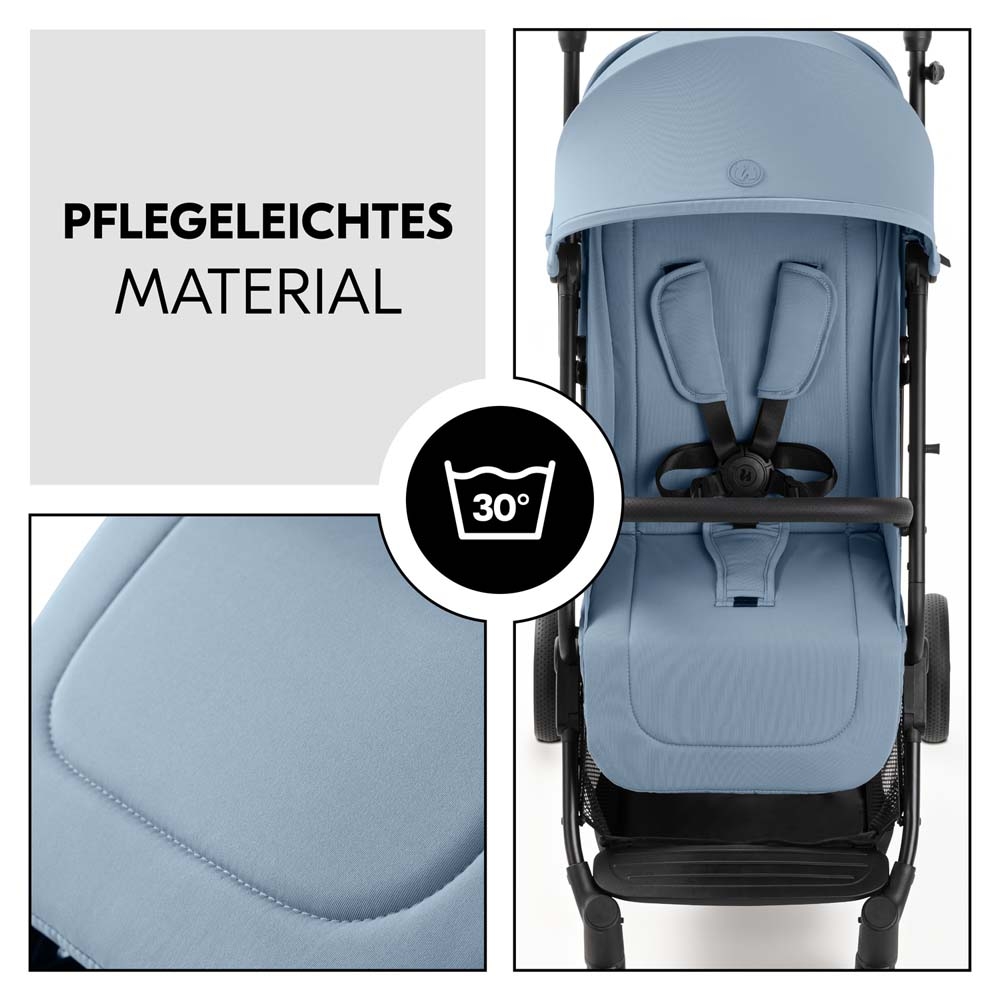 Завдяки амортизаційній підвісці та стійким до проколів колесам ваша дитина отримає комфортну поїздку. Швидке маневрування торговим центром також стає дитячою грою завдяки обертовим переднім колесам. Коли ваша дитина хоче спати, ви можете повністю відкинути спинку однією рукою. Сонцезахисний навіс із захистом від ультрафіолетового випромінювання 50+ дає приємну тінь, а сітчасті виходи забезпечують свіже повітря.