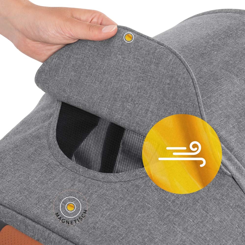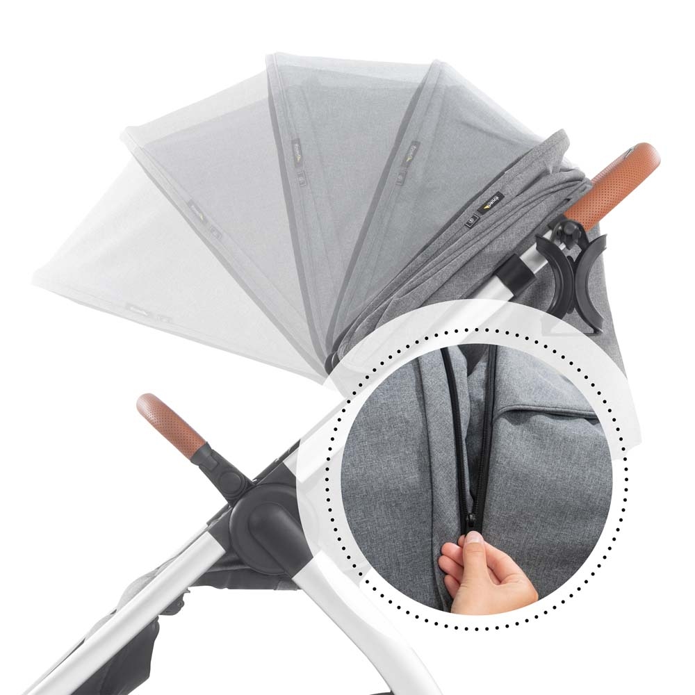 Завдяки м'яким матеріалам і просторому сидінню ваша дитина буде сидіти з комфортом до 4 років. Положення "лежачи" та регульована підніжка, а також розкладний 3-зонний капюшон із захистом від сонця UPF 50+ та вентиляційним віконцем заманюють відпочити.