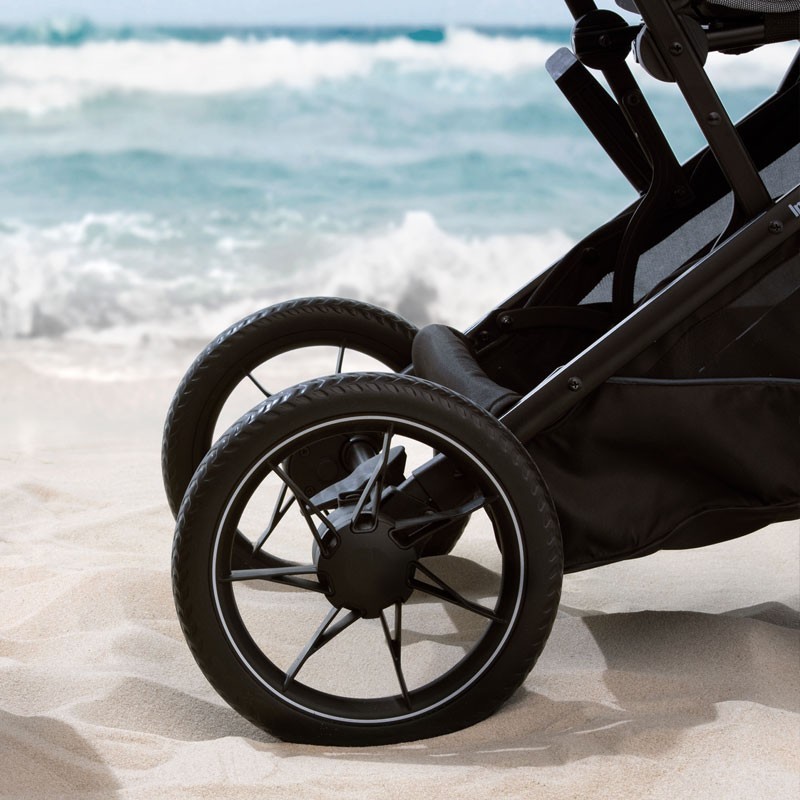 Назустріч пригодам усією родиною! Зручно транспортується завдяки компактним розмірам у складеному вигляді та легкій вазі (менше 8 кг). Коляска долає будь-які перешкоди, забезпечуючи максимальний комфорт дитині завдяки великим колесам з підшипниками та м'якій підвісці.