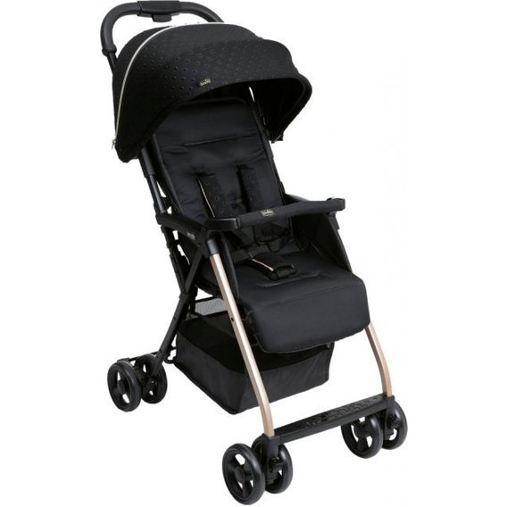 Коляска складається одним рухом, стійка в складеному положенні, компактна. Оснащена боковою ручкою для транспортування у складеному положенні.