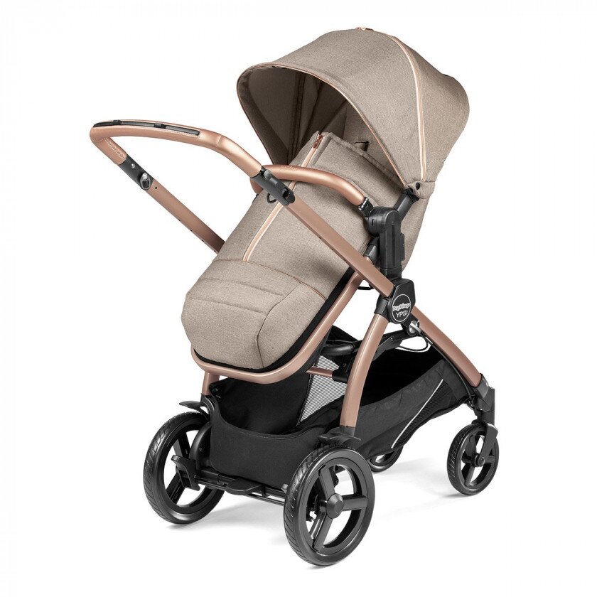 Особливості коляски Peg-Perego Ypsi Mon Amour: колеса з 12-ма підшипниками; перемикач передніх коліс розташований збоку на рамі; реверсивне сидіння з можливістю установки обличчям до мами або по ходу руху; передбачені 5-точкові ремені безпеки з м'якими плечовими накладками; нахил спинки регулюється в 3-х положення до горизонтального; прогулянковий блок оснащений функціональною ручкою для перенесення, а оббивка конструкції на блискавки, тому вона легко знімається і переться при температурі 30° в делікатному режимі машинного прання; капюшон з оглядовим віконцем і фільтром UV (захист UPF 50+) розкладається до бампера. На шасі можна встановити автокрісло Primo Viaggio i-Size або Primo Viaggio SL (не входять в комплектацію).