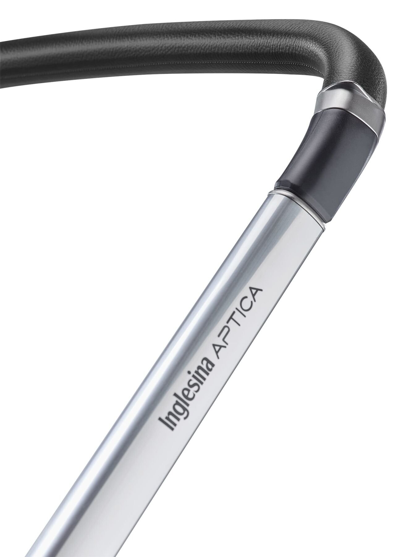 Регульована по висоті ручка (4 позиції) декорована вставками з еко шкіри, що поєднуються з деталями обробки на основний оббивці.