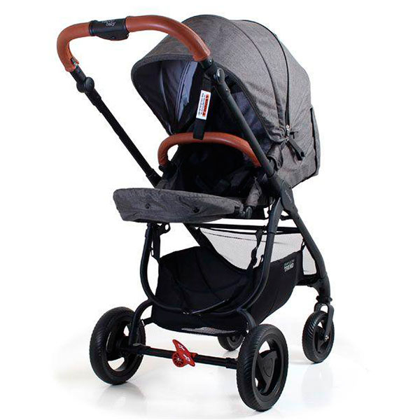 Поліуретанові колеса мають різний діаметр і не схильні до проколів. Передні - плаваючі, з можливістю фіксації в прямому положенні. Між задніх коліс розташовується зручна гальмівна педаль, безпечна для батьківської взуття. Valco Baby Snap4 Ultra Trend виконана з міцної висококласної тканини Tailormade, яка не тільки зручна у догляді, але і створює стильний вигляд коляски. Накладки з еко-шкіри на батьківську ручку і бампер підкреслюють презентабельний вигляд цього дитячого транспорту. Батьківська ручка регулюється в трьох положеннях. Дуже велике багажне відділення зі зручним доступом обов'язково стане в нагоді на прогулянці.