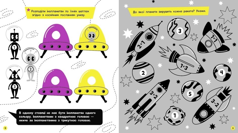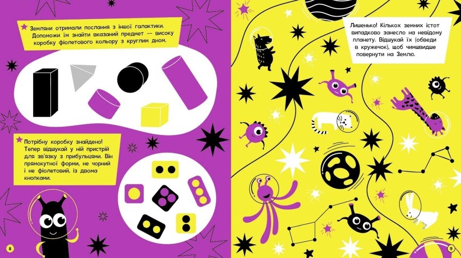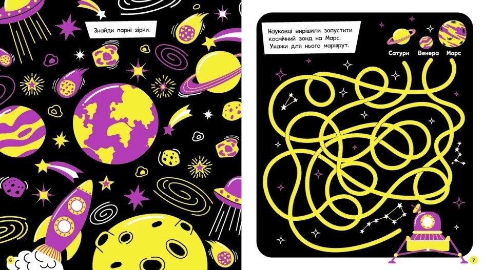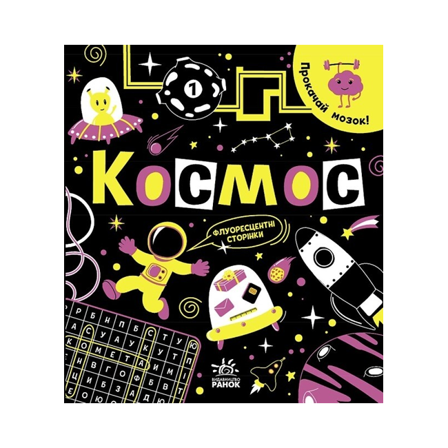 Книжка-активіті «Космос» наповнена іграми та завданнями, щоб навчити дитину критично мислити, встановлювати послідовність, читати й обчислювати, задіювати логіку, увагу та уяву. Головоломки з інопланетянами, математичні приклади з ракетами, лабіринти з планетами й космонавтами — усе це (і багато іншого) на суперяскравих флуоресцентних сторінках, які так до вподоби молодшим школярам. Якщо розвиватися — то яскраво!