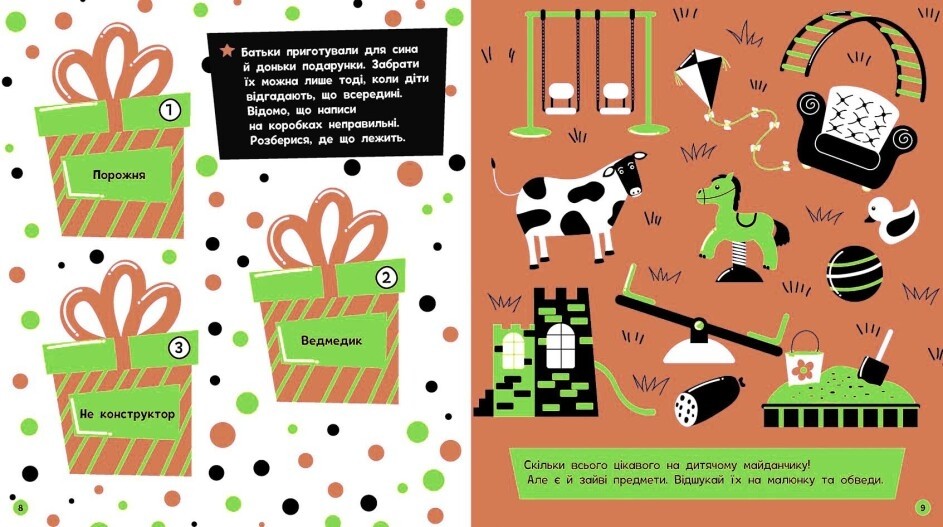 Ласкаво просимо до парку розваг! На сторінках цієї книжки-актівіті на тебе чекають атракціони, лабіринти, циркові номери та справжнісінький маскарад! Ти вдосконалиш логіку й пам'ять, вміння обчислювати та встановлювати послідовність. На святі дня народження розв'яжеш головоломки, а на дитячому майданчику «прокачаєш» увагу.Ба більше — книжечка має флуоресцентні сторінки, тож подорож буде меганасиченою! Гайда розвиватися яскраво!